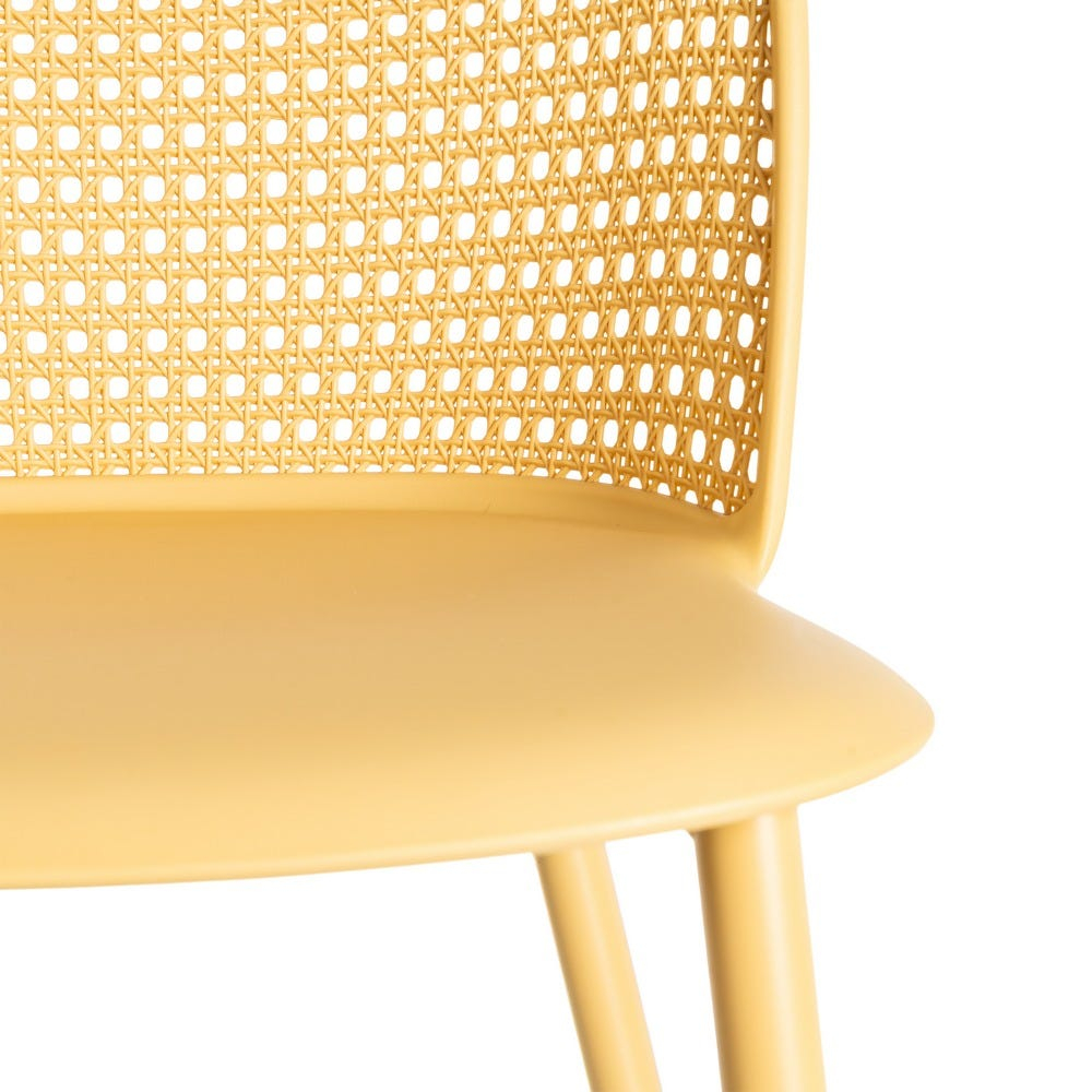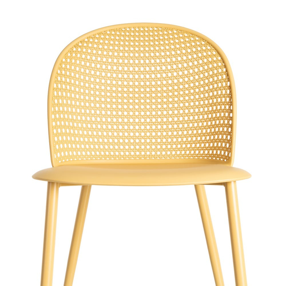 Culoarea galbenă aduce vitalitate și optimism, transformând aceste scaune în puncte de atracție pentru terase și spații comerciale. Forma ergonomică și spătarul perforat contribuie la confortul utilizatorilor.