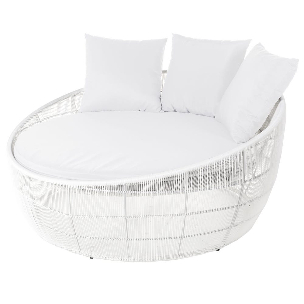 Patul este prevăzut cu o saltea confortabilă de 7 cm, cu husă detașabilă, plus 3 perne decorative – toate cu fețe ușor de îndepărtat și curățat. Este o piesă concepută pentru relaxare de lungă durată, ideală pentru după-amiezile leneșe sau pentru conversații prelungite sub soare.