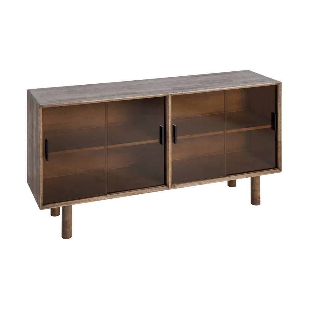 IXIA Bufet cu design minimalist din lemn maro și uși din sticlă securizată Amy 160 x 46 x 80 cm