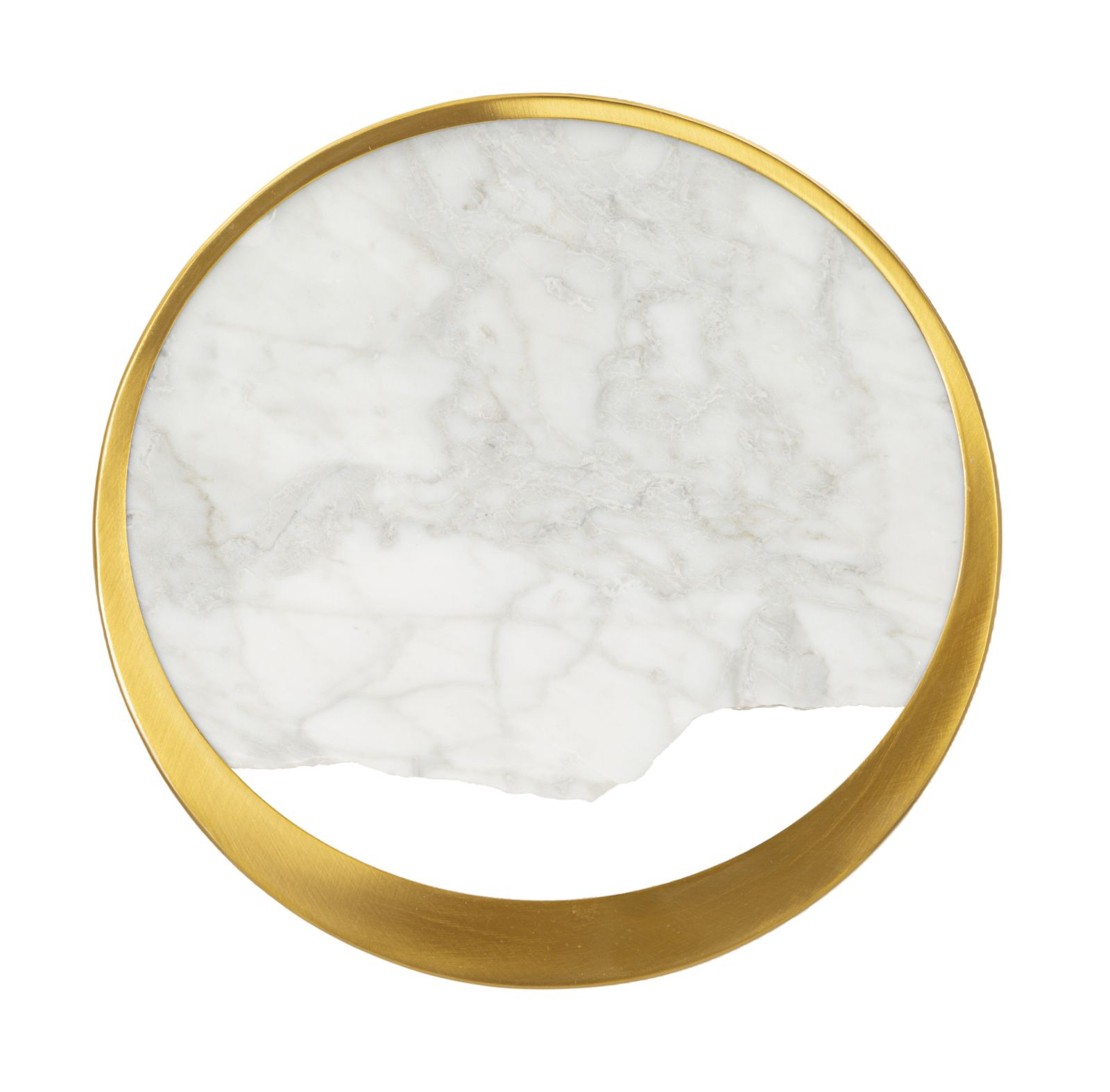 Aplica de perete Marble este o piesă elegantă și modernă, ce îmbină aspectul rafinat al marmurei albe cu un cadru auriu sofisticat. Designul său rotund adaugă echilibru și armonie, fiind perfect atât pentru interioare clasice, cât și pentru spații contemporane.