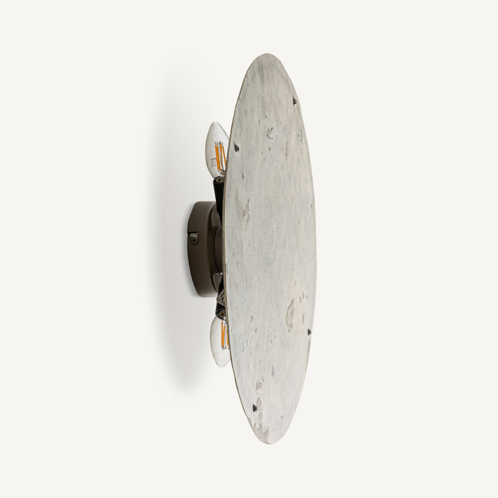 Aplica perete rotunda din piatra in tonuri neutre cu detalii din fier negru Moon 46 x 12 x 46 cm