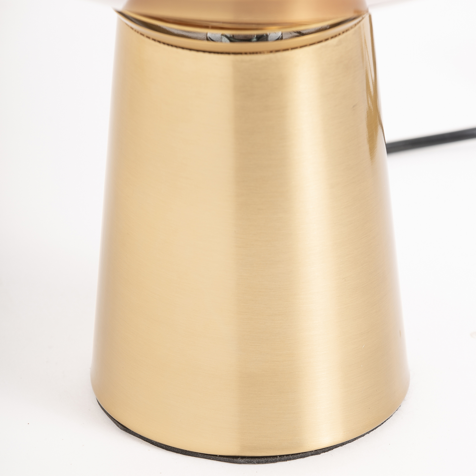 Veioză Art Deco cu finisaj auriu și cristal, creată manual din fier. Această piesă elegantă aduce strălucire și rafinament în orice încăpere, fiind ideală pentru noptiere, console sau birouri mici.