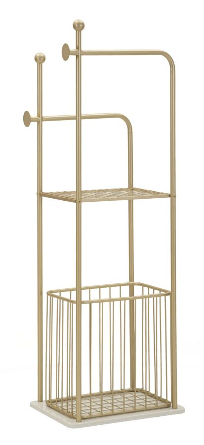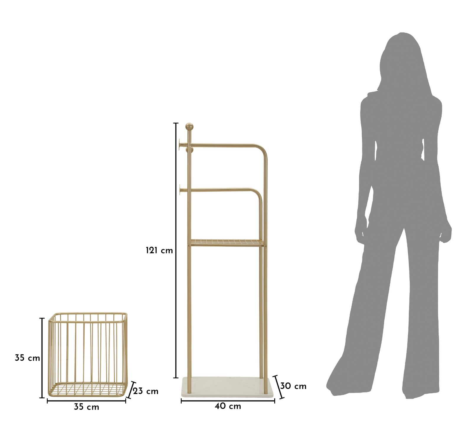 Suport pentru prosoape din metal auriu cu suport pentru hârtie igienică raft și coș depozitare cu bază din marmură artificială 40 x 30 x 121 cm