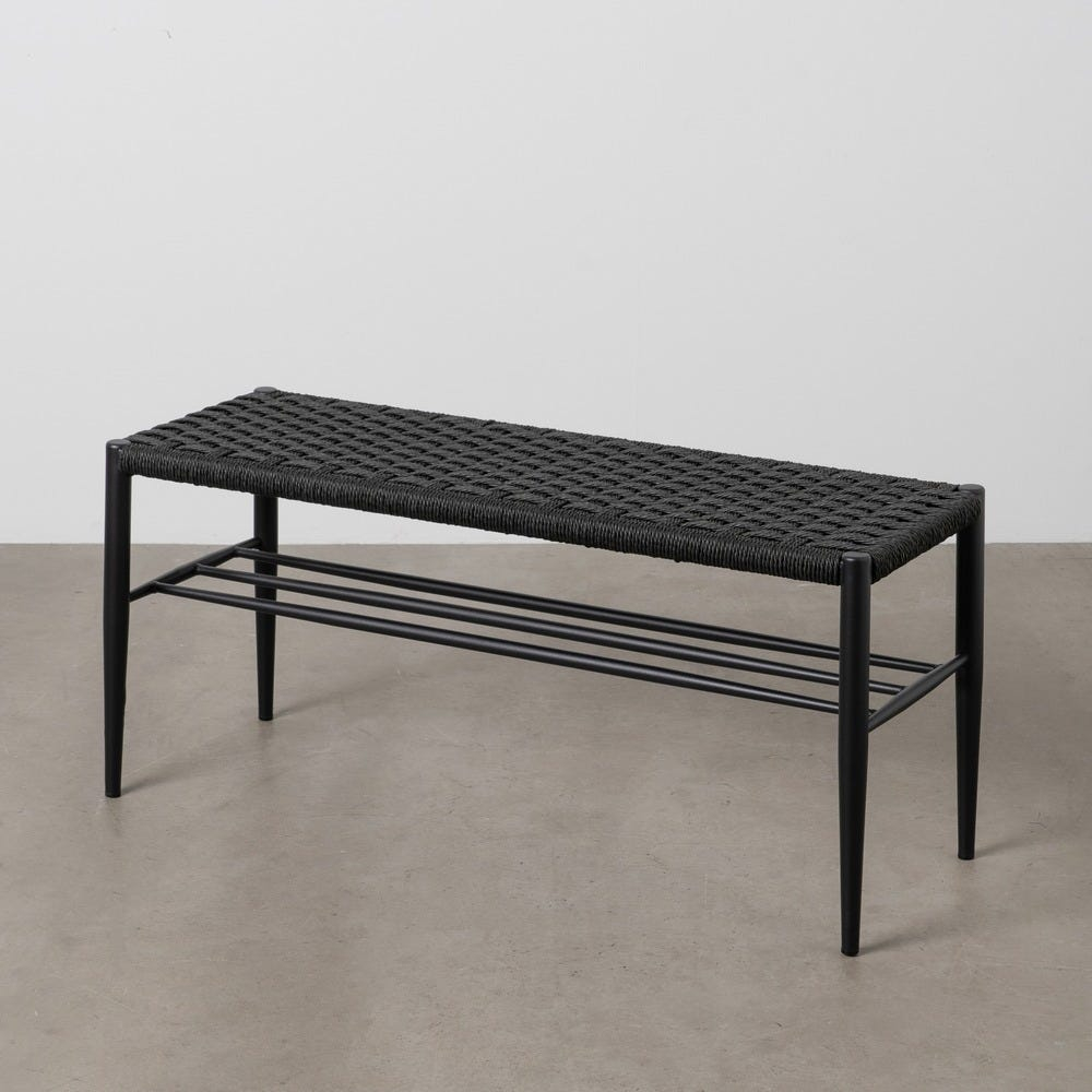 Cu o linie suplă și un look contemporan, banca aduce textură prin șezutul împletit manual și ordine prin raftul inferior, astfel încât intrarea, holul sau zona de zi să rămână aerisite și atent organizate.