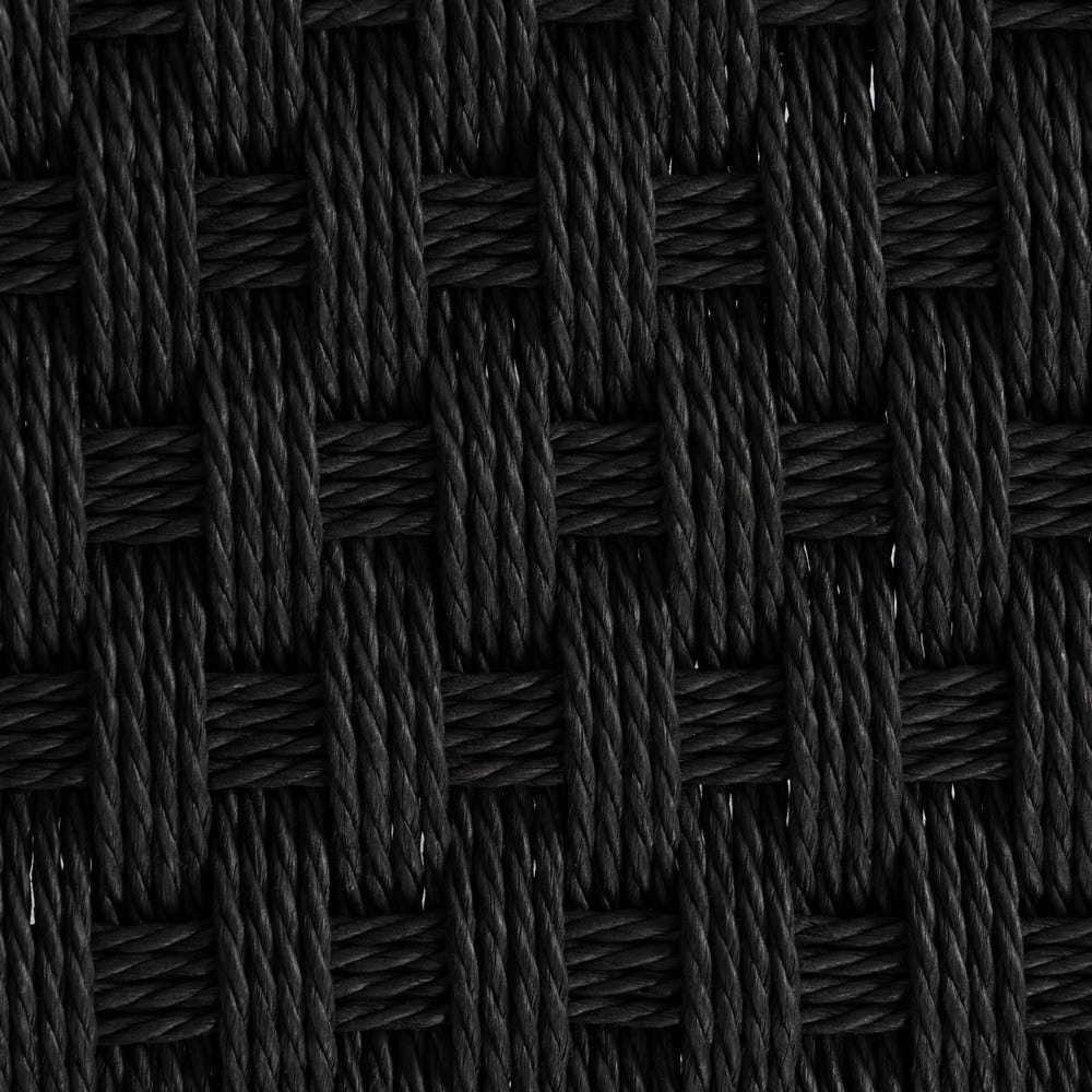 Cadrul metalic subțire oferă stabilitate fără a încărca vizual, iar finisajul negru mat se potrivește atât cu pardoseli deschise, cât și cu pereți texturați. Șezutul împletit din sfoară de hârtie asigură o senzație plăcută la atingere și adaugă un accent tactil modern.