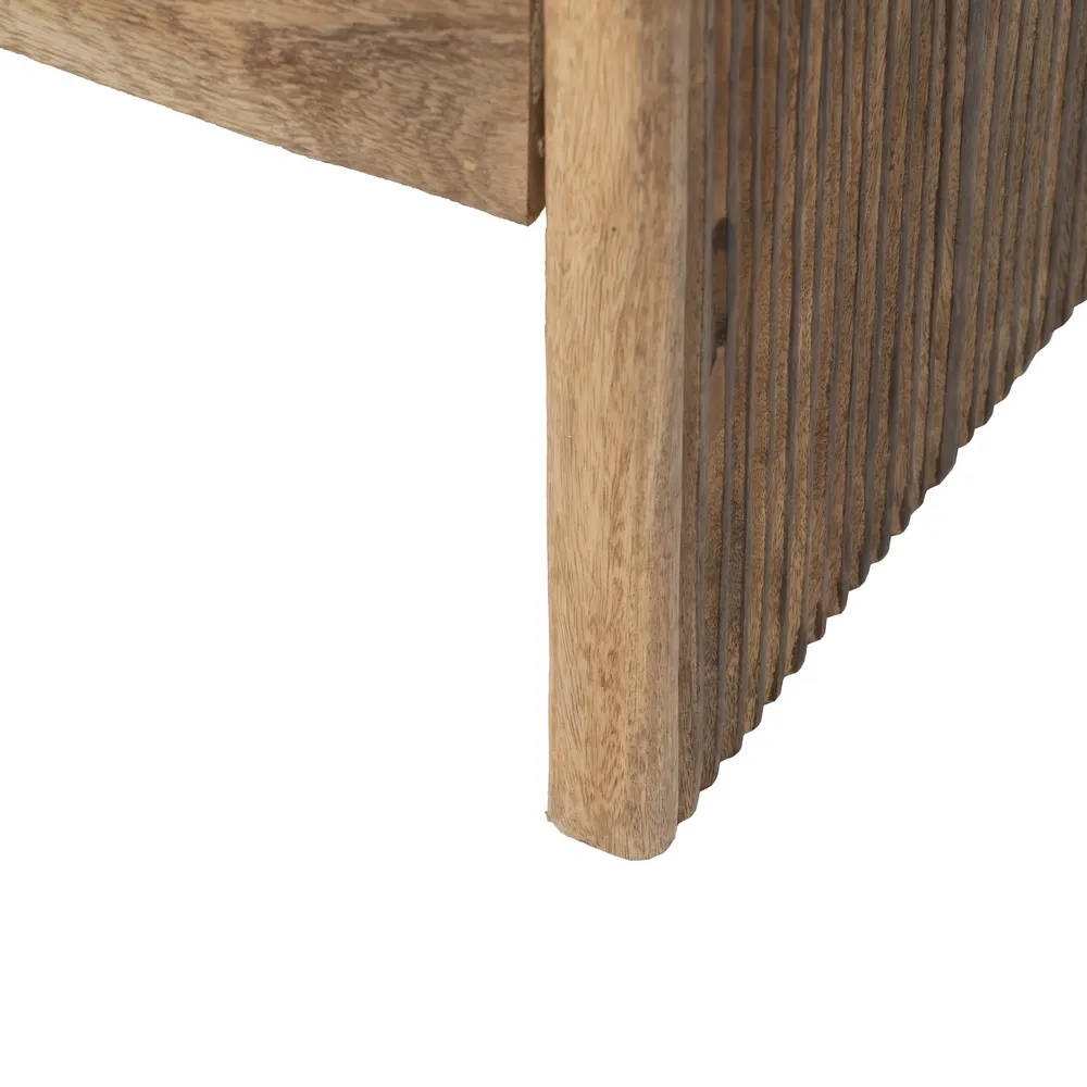Fabricată din lemn masiv de mango această banchetă oferă nu doar un aspect estetic deosebit, dar și durabilitate în timp. acest tip de lemn conferă un aspect cald și natural, în timp ce detaliile din fier adaugă o notă de eleganță clasică.