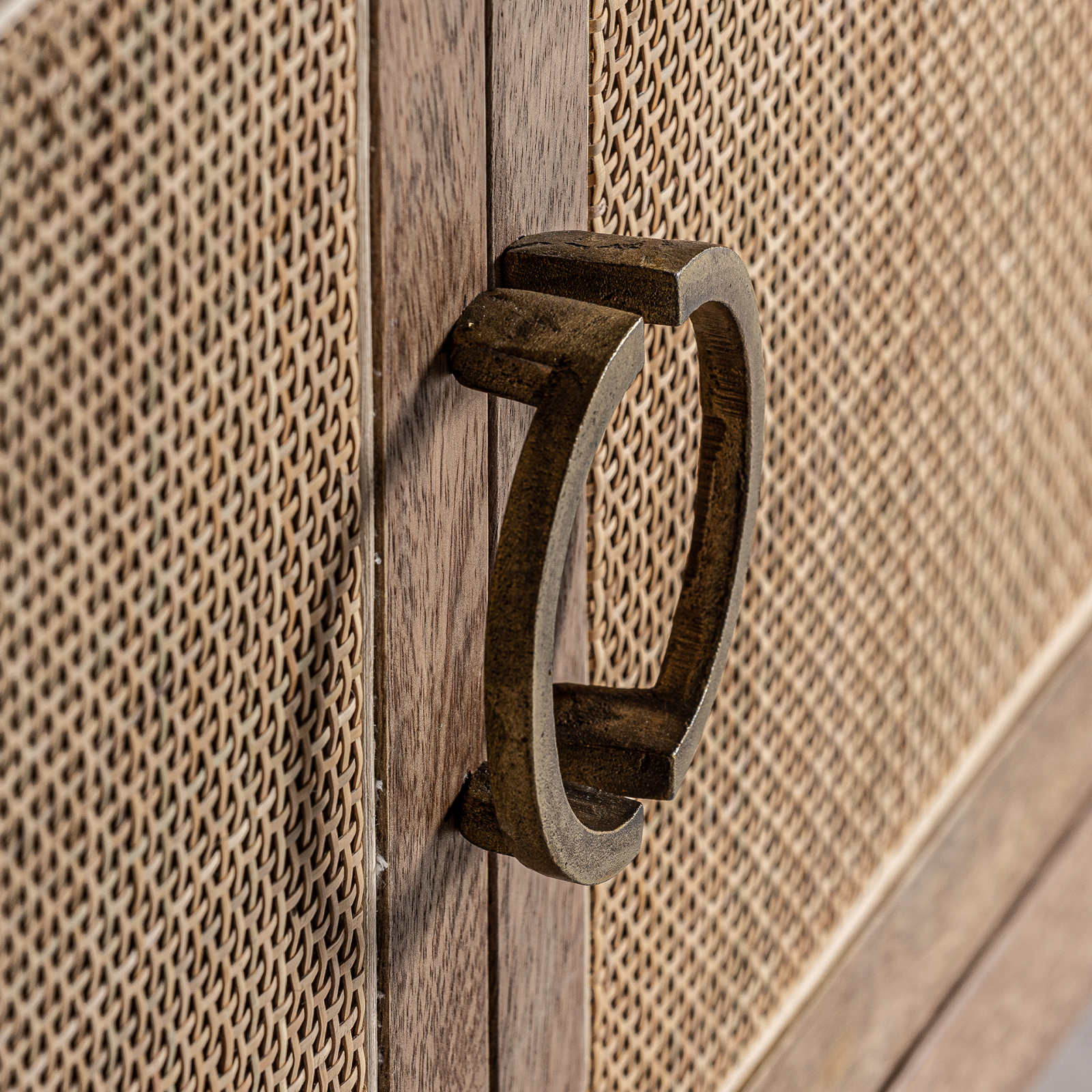Comoda scandinava din lemn de mango si ratan. Piesa eleganta cu aspect natural si modern, ideala pentru interior functional. Comode scandinave cu design artizanal si finisaj cald.