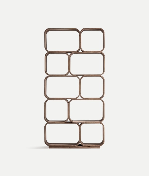 Datorită structurii sale aerate, piesa poate fi utilizată atât ca bibliotecă, cât și ca separator decorativ de spațiu. Finisajul maro cald evidențiază fibra naturală a lemnului, iar proporțiile sale echilibrate o fac ideală pentru livinguri moderne, birouri de design sau proiecte rezidențiale rafinate.