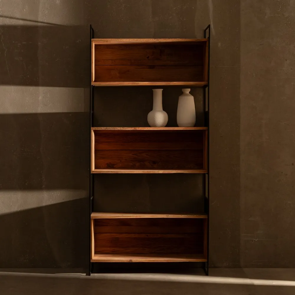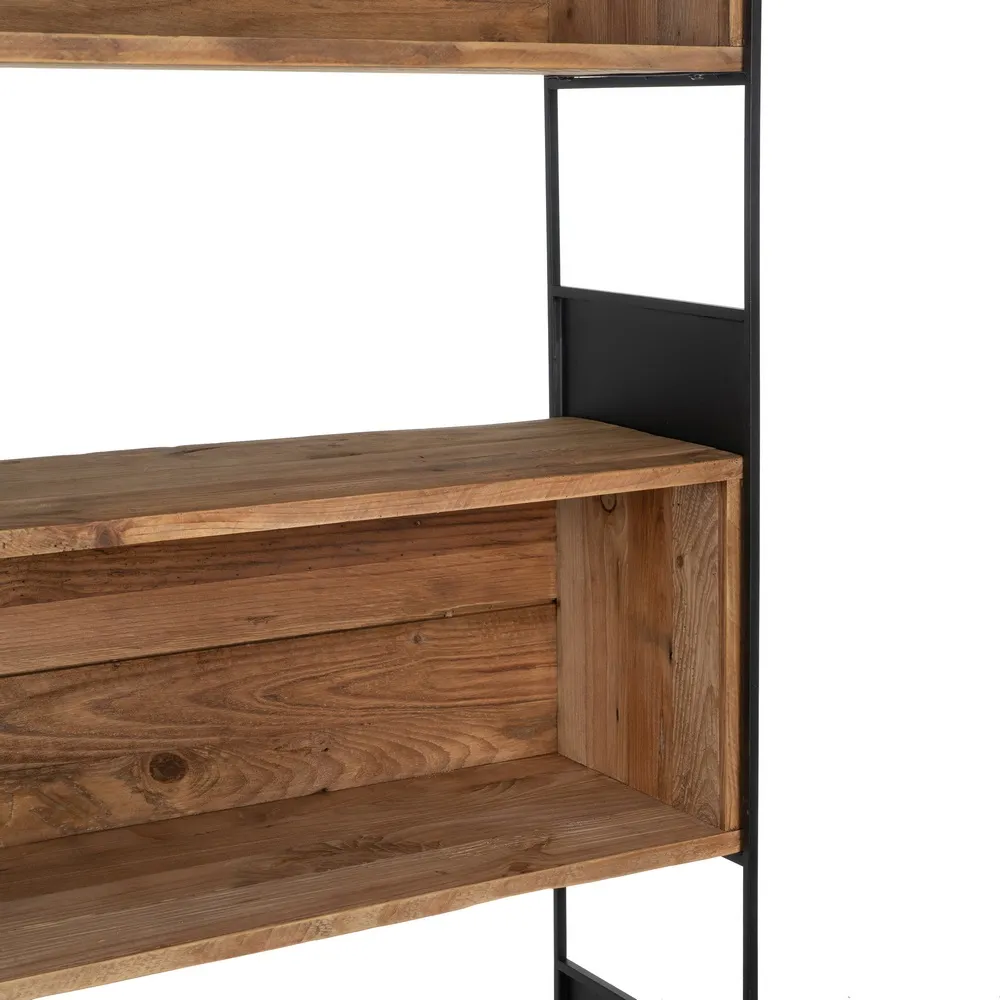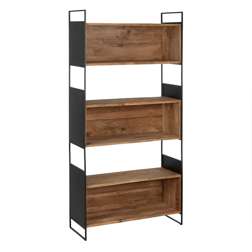 Biblioteca industrială cu rafturi din lemn de pin reciclat și metal, măsurând 91 cm lățime, 35 cm adâncime și 190 cm înălțime, este o piesă de mobilier elegantă și funcțională. Designerii spanioli de la Denzzo au creat un contrast vizual puternic între lemnul de pin reciclat și structura metalică neagră, subțire dar robustă. Cu sertare interioare de 86x31 cm și o distanță între ele de 32 cm, oferă spațiu generos pentru expunerea cărților și obiectelor decorative. Importată de CreativDeco, această bibliotecă combină stilul industrial cu sustenabilitatea, fiind perfectă pentru spații moderne care necesită soluții de depozitare cu caracter.