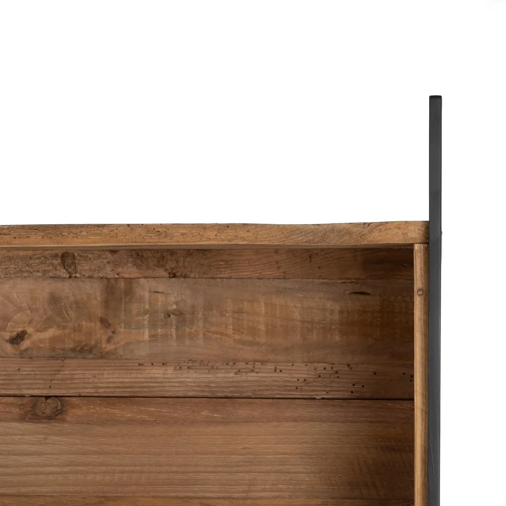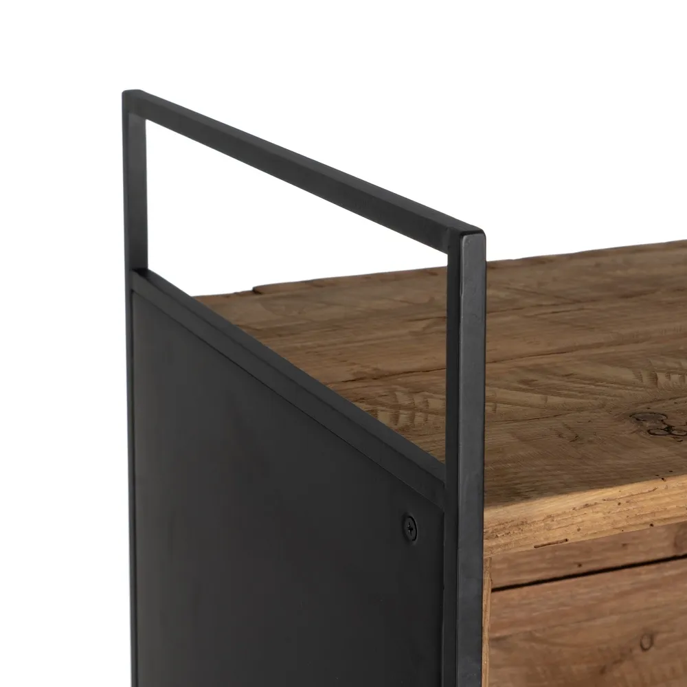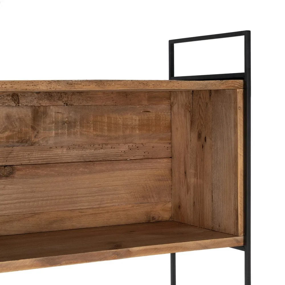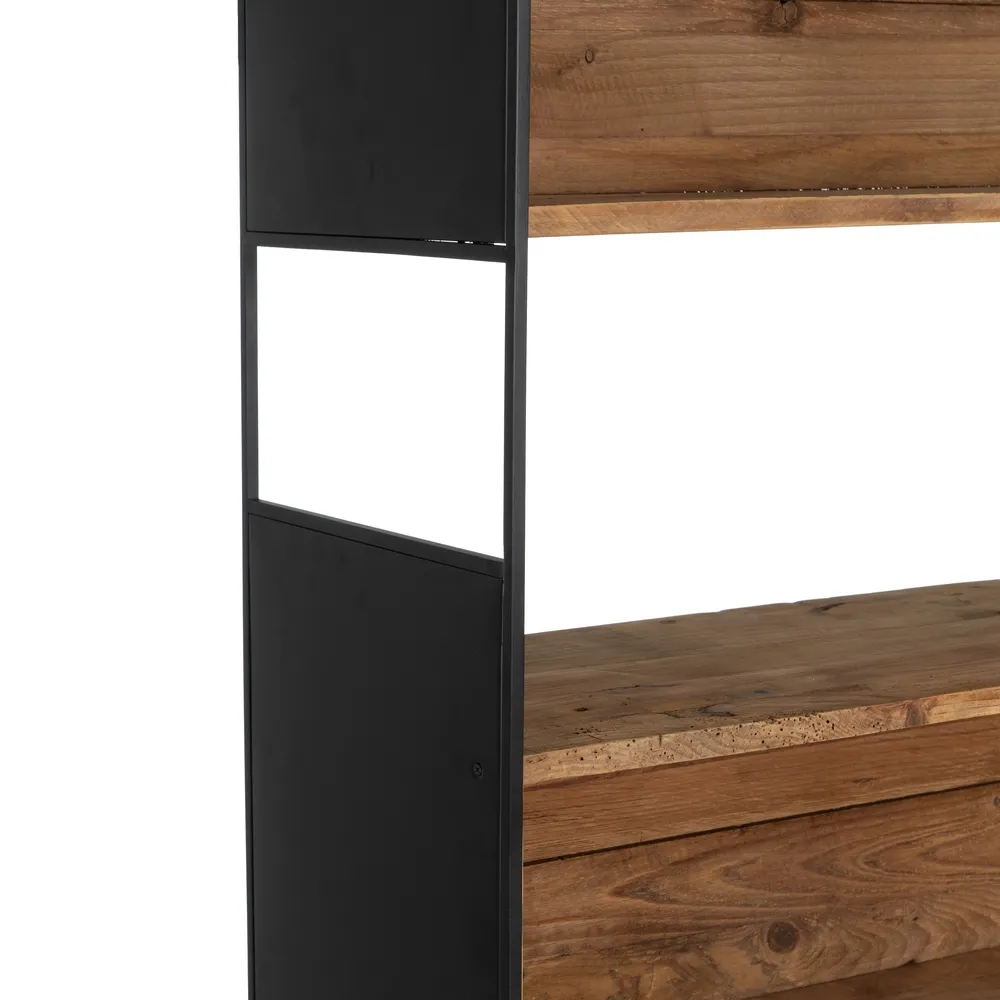 Biblioteca industrială cu rafturi din lemn de pin reciclat și metal, măsurând 91 cm lățime, 35 cm adâncime și 190 cm înălțime, este o piesă de mobilier elegantă și funcțională. Designerii spanioli de la Denzzo au creat un contrast vizual puternic între lemnul de pin reciclat și structura metalică neagră, subțire dar robustă. Cu sertare interioare de 86x31 cm și o distanță între ele de 32 cm, oferă spațiu generos pentru expunerea cărților și obiectelor decorative. Importată de CreativDeco, această bibliotecă combină stilul industrial cu sustenabilitatea, fiind perfectă pentru spații moderne care necesită soluții de depozitare cu caracter.