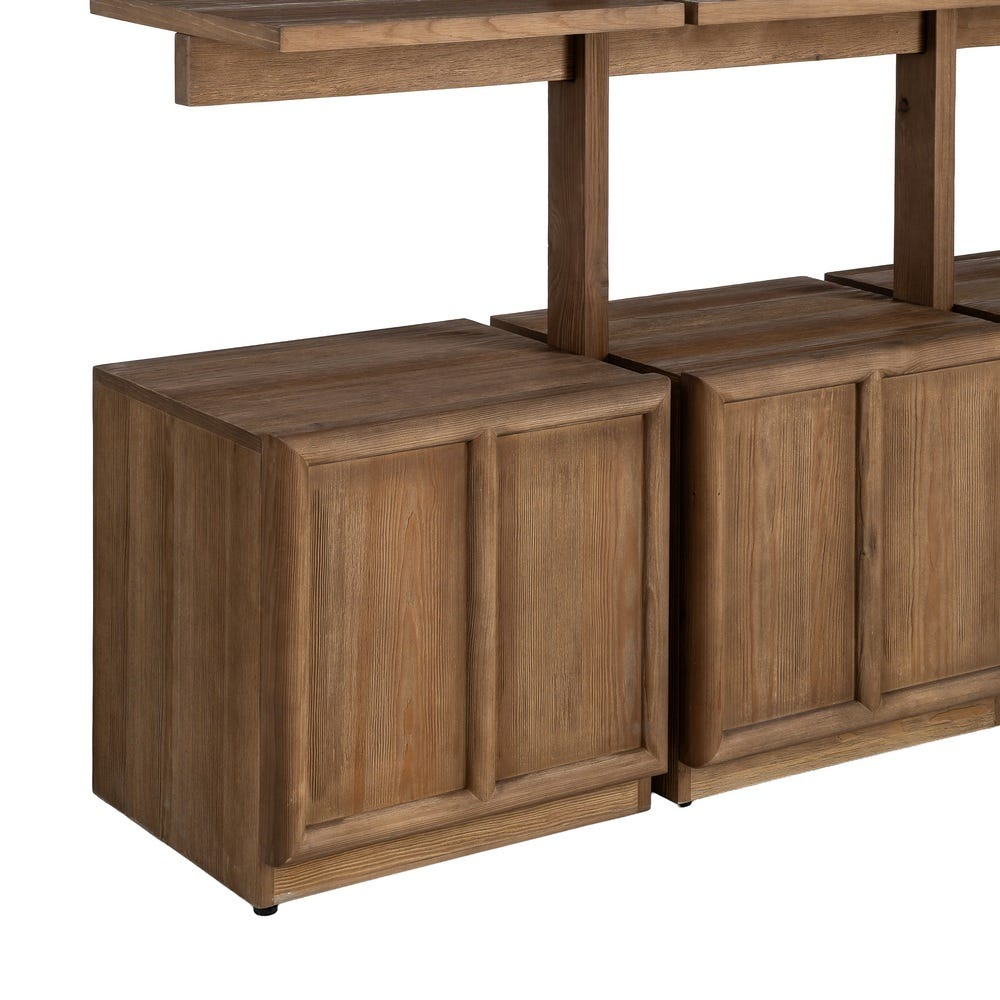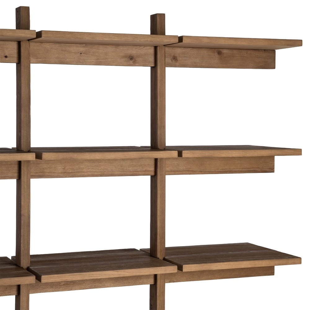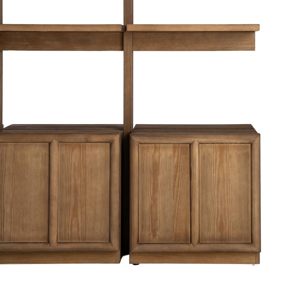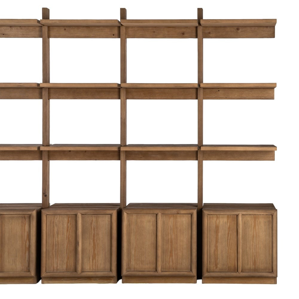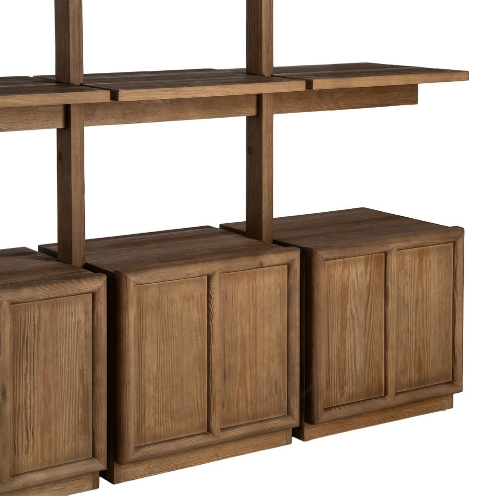 Bibliotecă modulară din lemn de pin natural cu rafturi deschise și corpuri de depozitare 210,5 x 44,5 x 187 cm