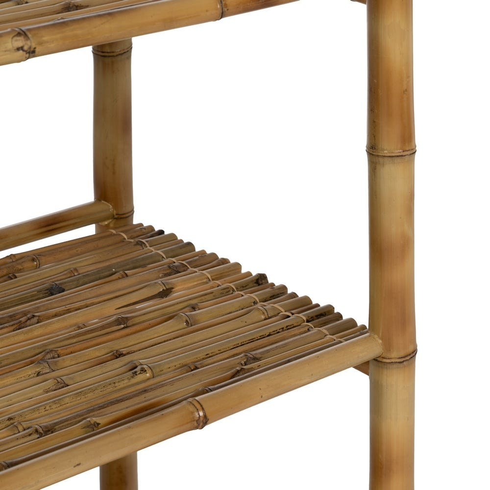 Realizată integral din bambus, etajera are o prezență naturală și autentică, cu nuanțe calde și fibre vizibile ce oferă un farmec aparte. Structura verticală cu trei nivele permite organizarea eficientă a obiectelor decorative, plantelor, coșurilor sau accesoriilor de depozitare, fără a încărca vizual spațiul. Tonurile naturale o fac ușor de integrat atât în decoruri boho, cât și în amenajări nordice sau eco-friendly.