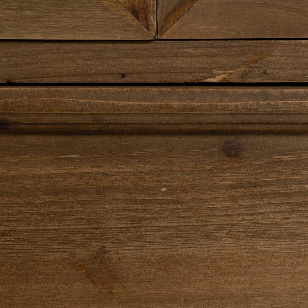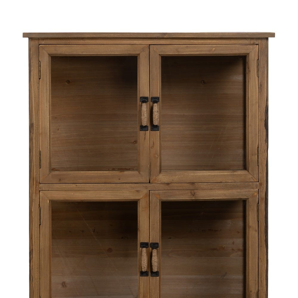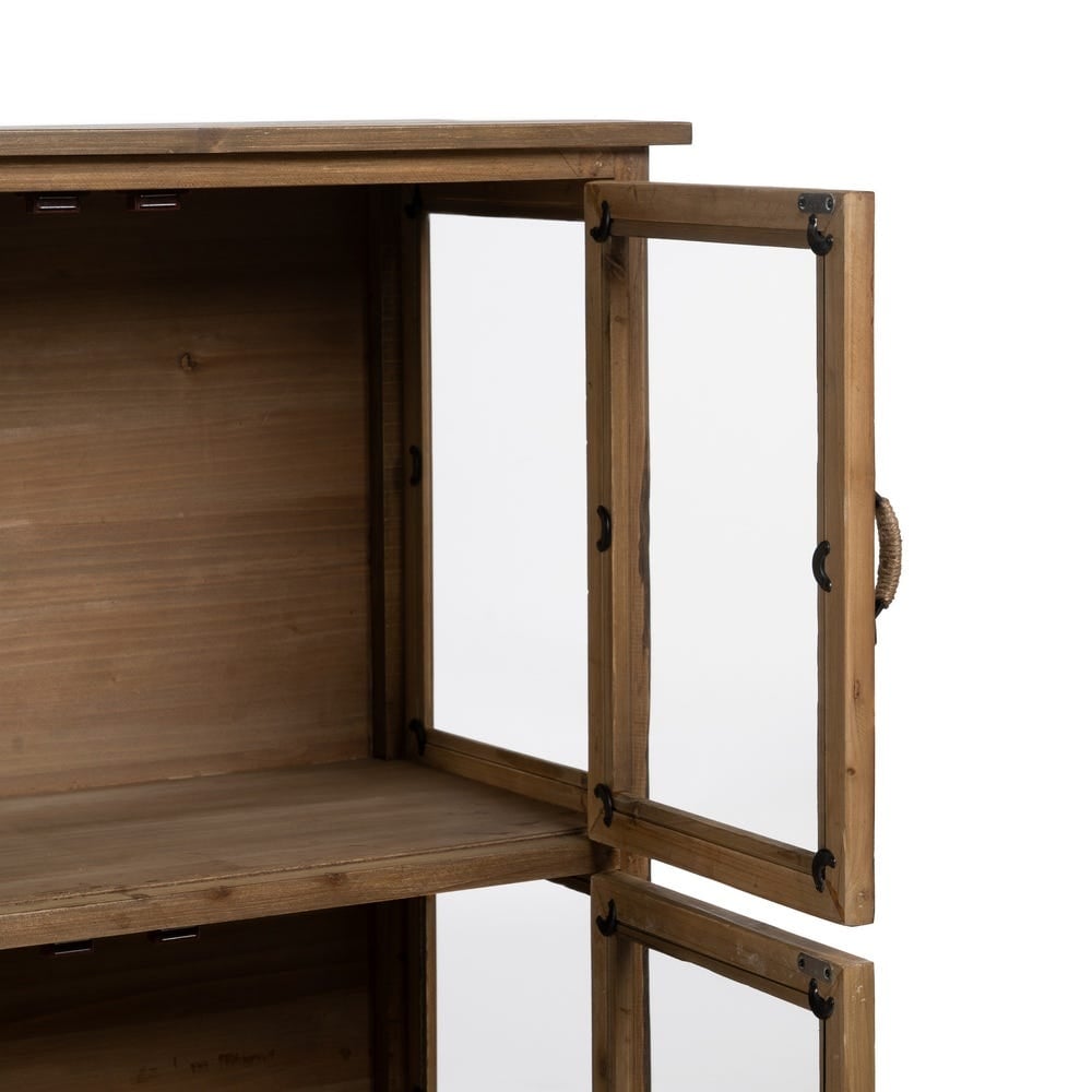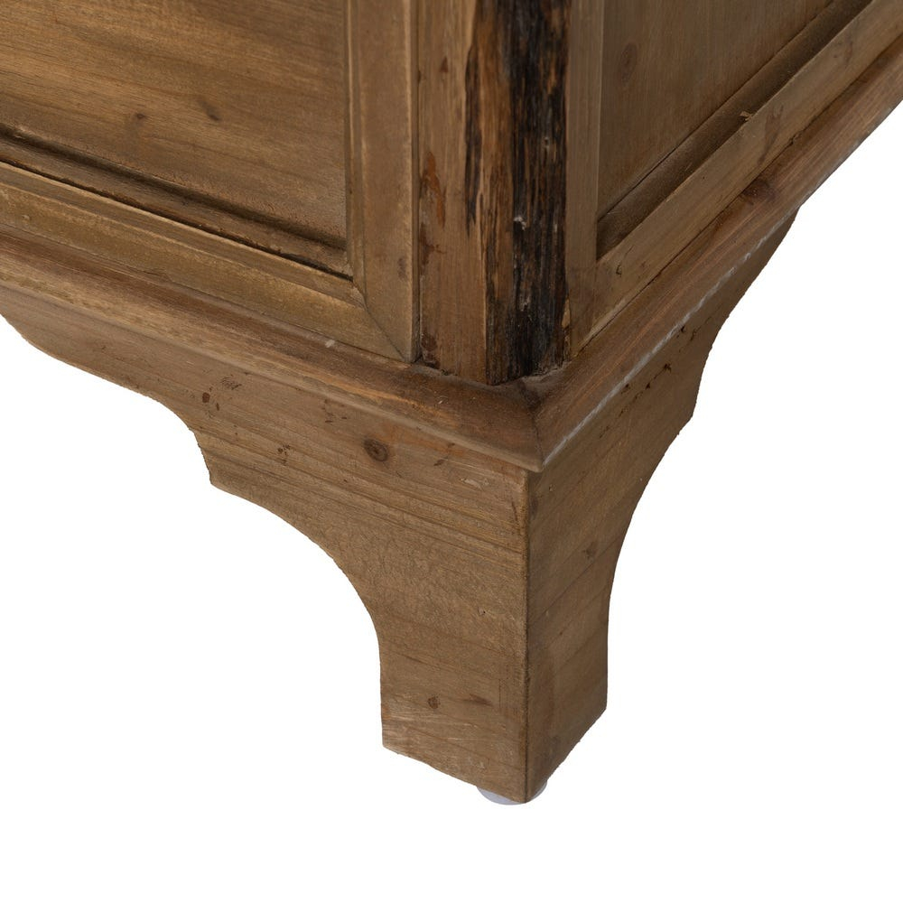 Această vitrină compactă din lemn de brad este ideală pentru spațiile în care ai nevoie de depozitare practică, dar și de un accent decorativ cald. Designul cu uși vitrate și sertar integrat oferă funcționalitate, în timp ce estetica rustică evidențiază textura naturală a lemnului.