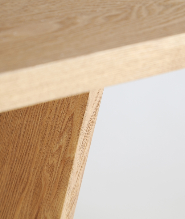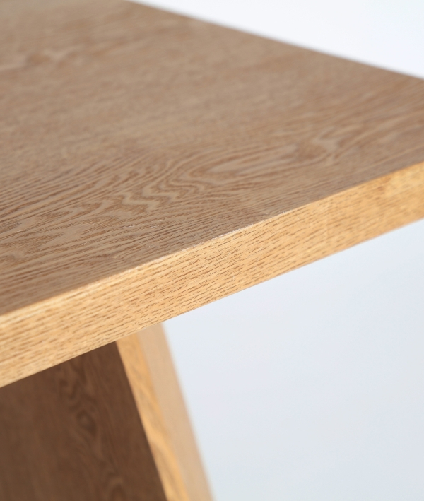 Structura din MDF in finisaj maro deschis este completata de elemente din placaj, oferind stabilitate si un aspect coerent. Blatul cu grosime generoasa si picioarele inclinate sustin un design aerisit, specific esteticii nordice, fara elemente decorative inutile.