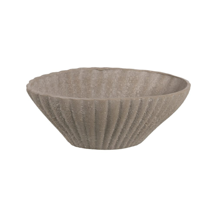 Bolul decorativ din ceramica gri aduce un accent natural si echilibrat in decorul interior. Forma ovala si textura striata cu aspect de piatra creeaza un efect vizual discret si elegant. Dimensiunea sa este potrivita pentru masa de cafea, consola sau comoda.