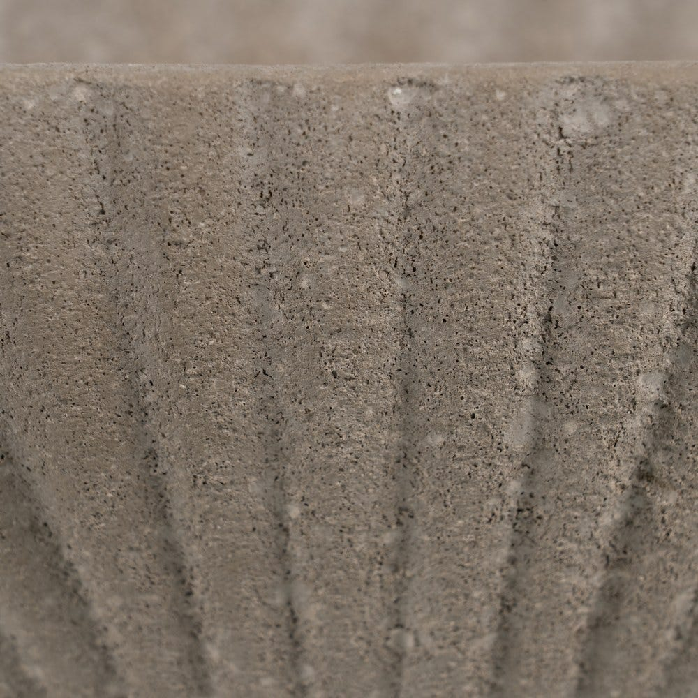 Designul bolului este definit de forma ovală și de suprafața striată care creează un ritm vizual interesant pe întreaga piesă. Textura ceramică și finisajul cu aspect de piatră oferă profunzime și un caracter natural obiectului decorativ.
