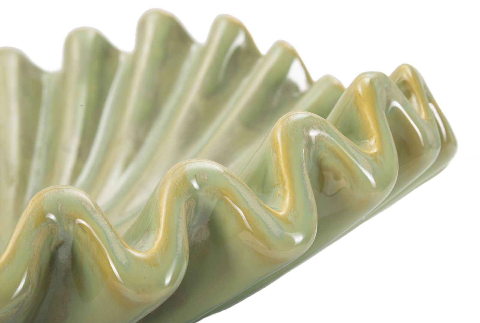 Fructiera decorativă Venice impresionează prin forma sa ondulată și designul modern, aducând un aer rafinat și artistic în orice încăpere. Realizată din ceramică de calitate, cu finisaj lucios într-o nuanță de verde natural, piesa se distinge prin jocul de linii și volumetrie spectaculoasă. Este atât un element funcțional, cât și un obiect de artă ce transformă masa sau comoda într-un punct de atracție.
