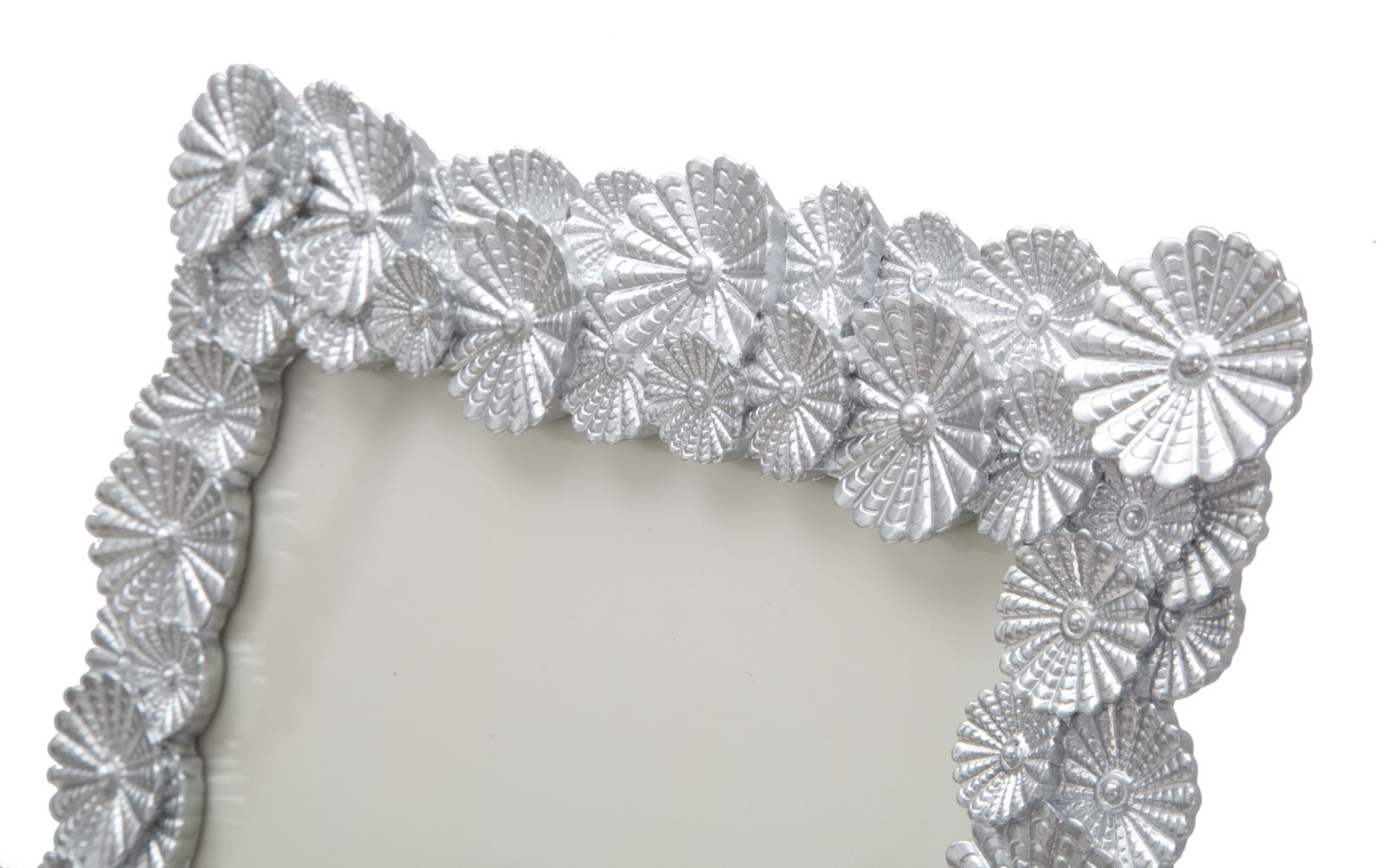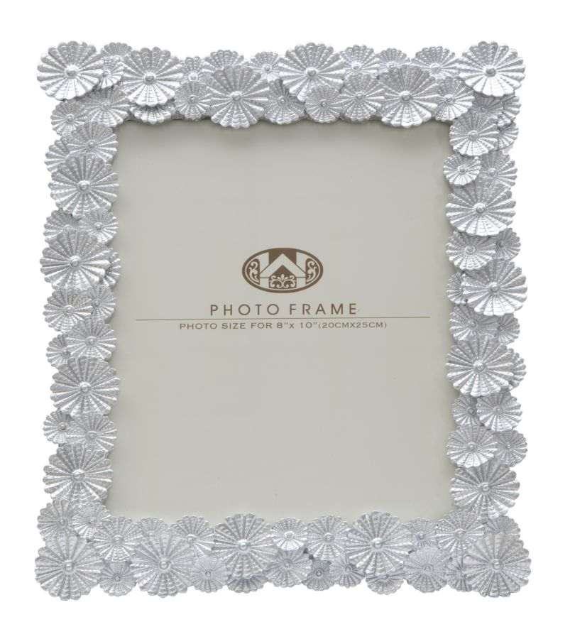 Ramă foto argintie cu flori în relief, oferind un aspect deosebit și atrăgător. Ideală pentru a păstra amintirile prețioase și a adăuga un element de rafinament în decorul tău. Căutați rame foto elegante pentru ocazii speciale? Aceasta este alegerea ideală!