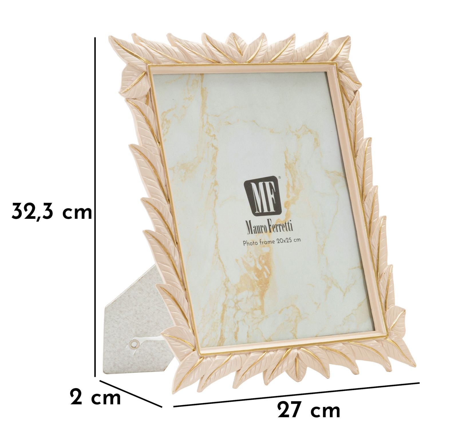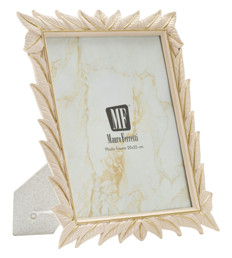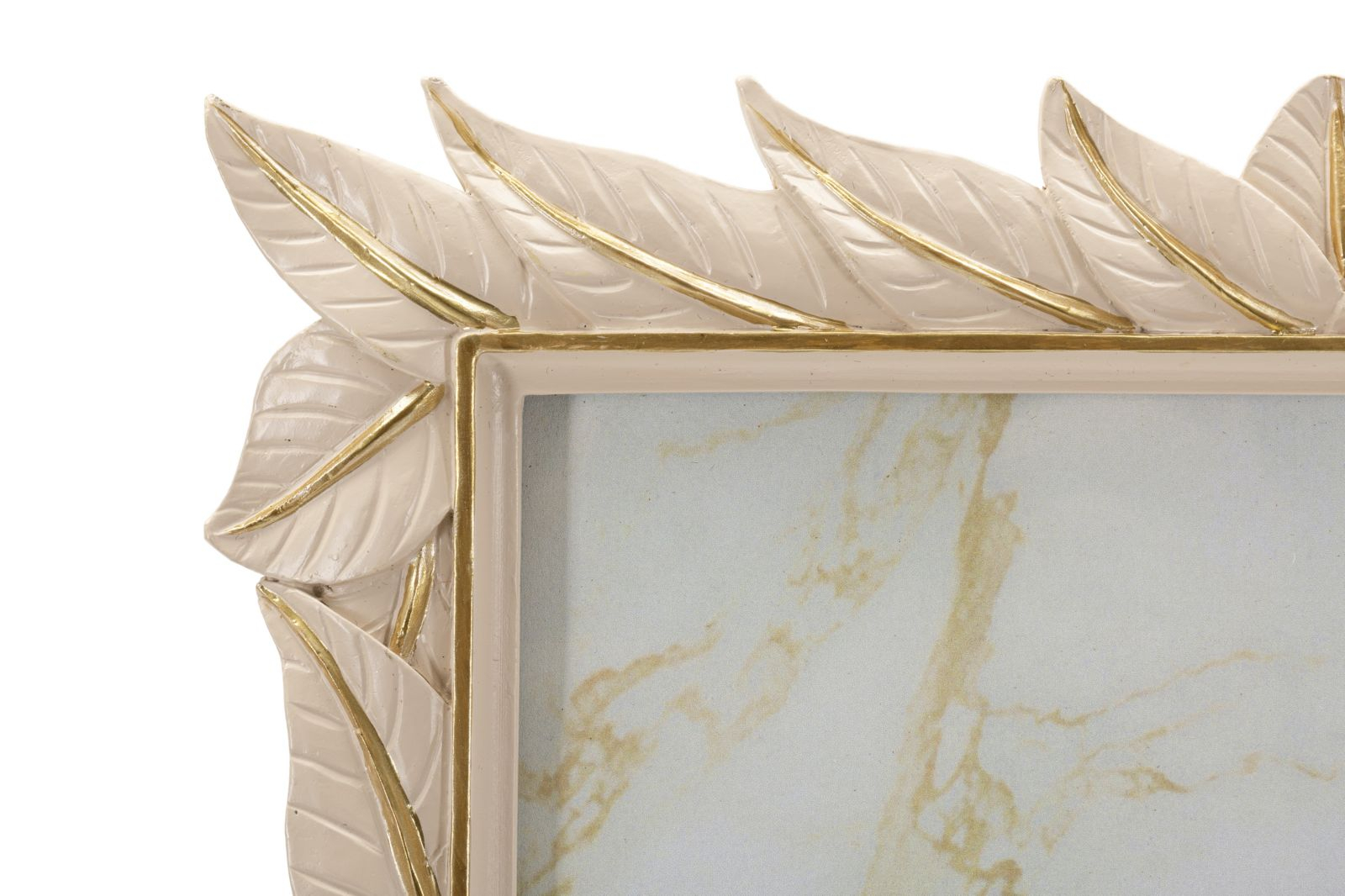 Ramă foto crem cu detalii aurii și design vegetal adaugă lumină și rafinament imaginilor 20x25 cm; textură de frunze în relief pentru un efect natural și sofisticat. Leaffy.