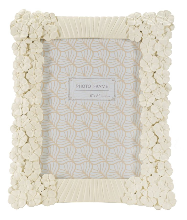 Decorul unic cu linii paralele și floricele realizate cu măiestrie adaugă un aspect desavarsit acestei rame foto. Materiale: rășină și sticlă