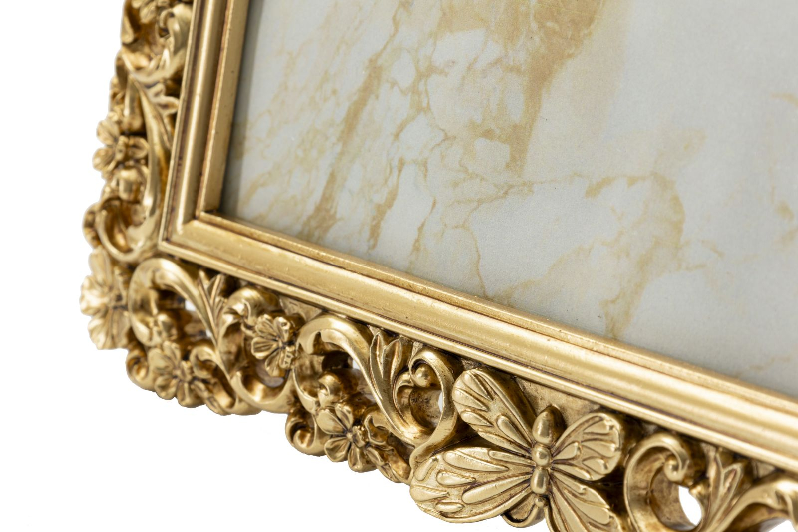 Ramele „Classical” atrag privirea prin conturul bogat, plin de flori și fluturi sculptați, finisate într-un auriu cald. Profilul subțire pune în valoare fotografia, iar ornamentele adaugă o notă elegantă pe orice comodă, raft sau masă de consolă.