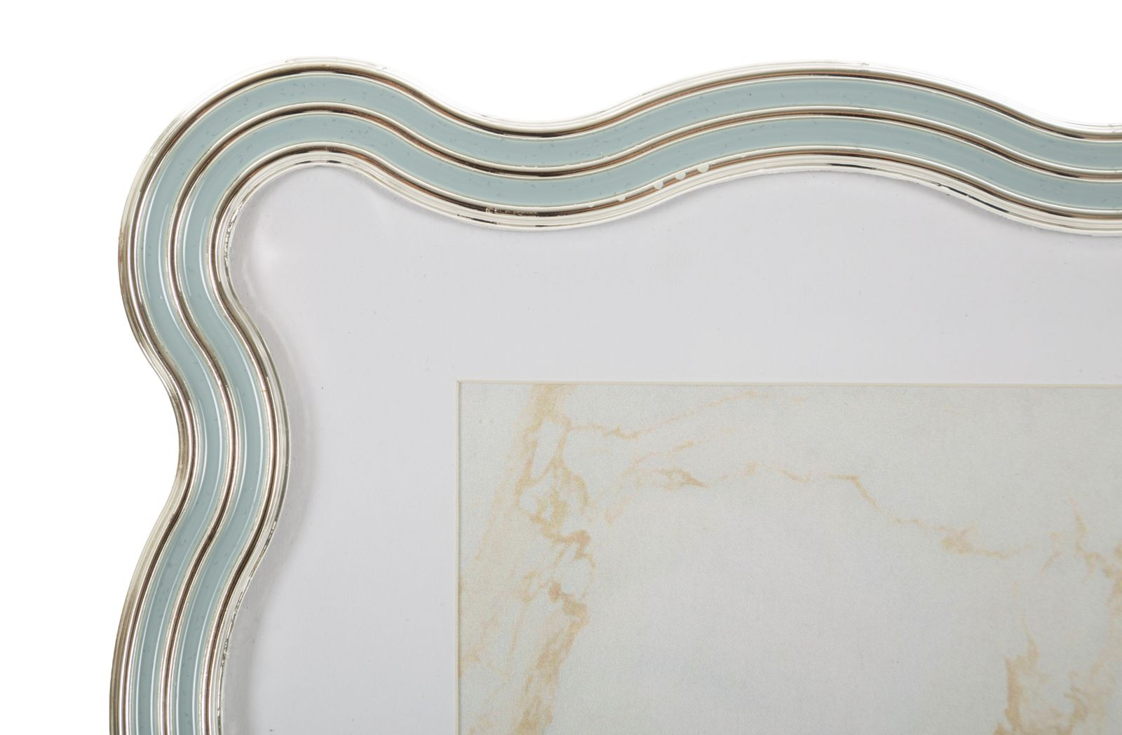 Ramele sunt realizate din metal și completate cu sticlă de protecție, iar combinația dintre albastrul deschis și accentele argintii evidențiază forma ondulată a marginilor. Designul Elizabeth se remarcă prin conturul fluid care încadrează armonios fotografia și aduce un plus de expresivitate vizuală.