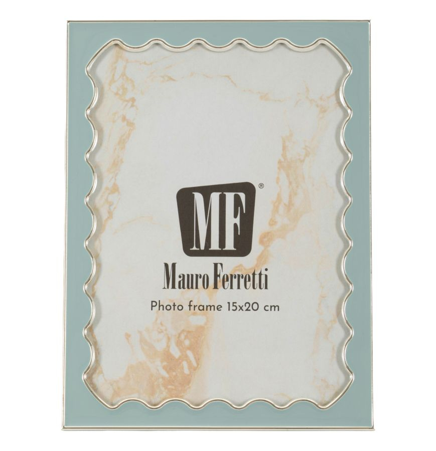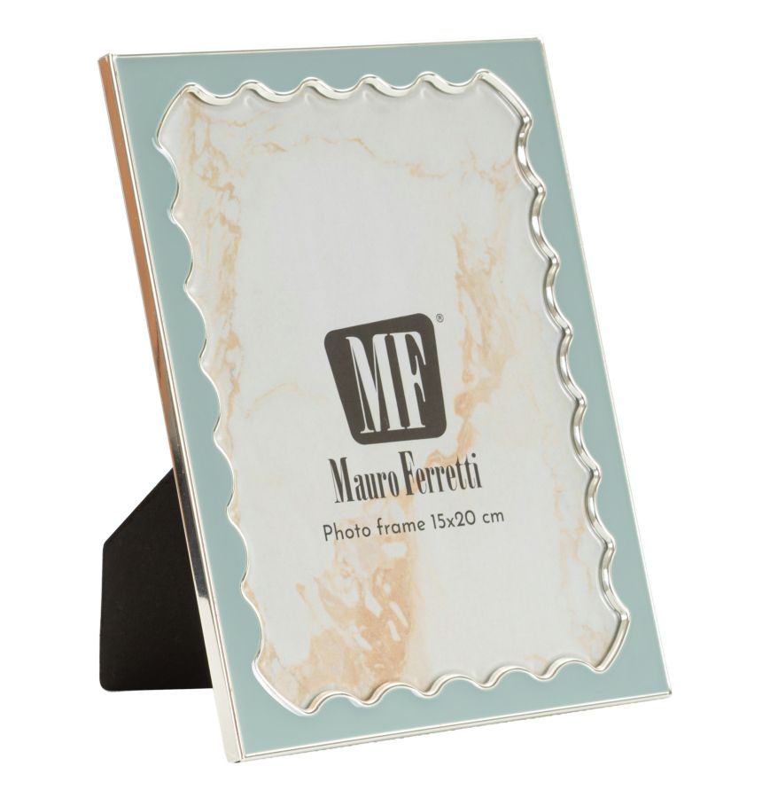Realizate din metal și completate cu sticlă de protecție, ramele sunt evidențiate de conturul ondulat accentuat subtil de inserțiile argintii. Nuanța albastru deschis adaugă prospețime și echilibru, transformând fiecare fotografie într-un punct de interes delicat și armonios.