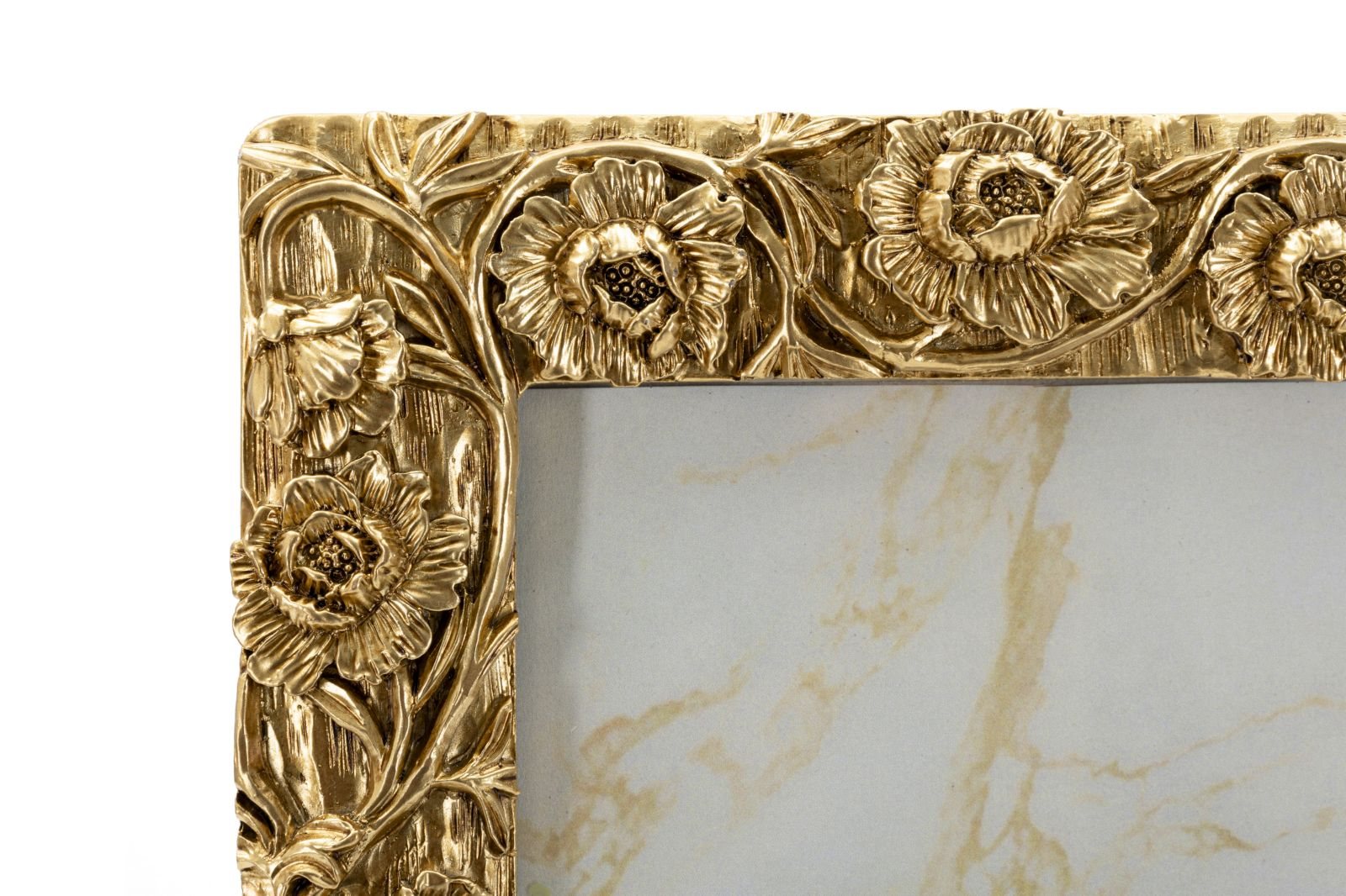 Rame foto rășină aurie cu detalii florale 20x25 cm adaugă strălucire și relief imaginilor. Setul de 2 evidențiază fotografiile prin ornamentație fină și aspect sofisticat. Poppy.