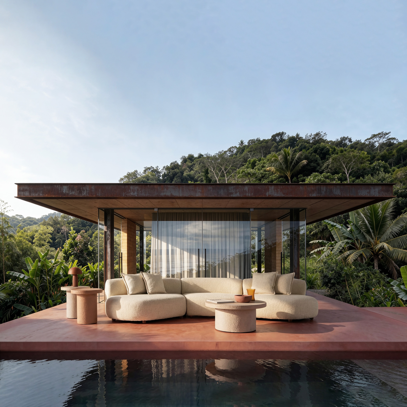 Sfatul designerului CreativDeco: Asociază canapeaua Wenden cu mese joase din beton, ceramică sau piatră naturală și accente vegetale bogate pentru a evidenția contrastul dintre formele rotunjite și liniile arhitecturale ale spațiului.