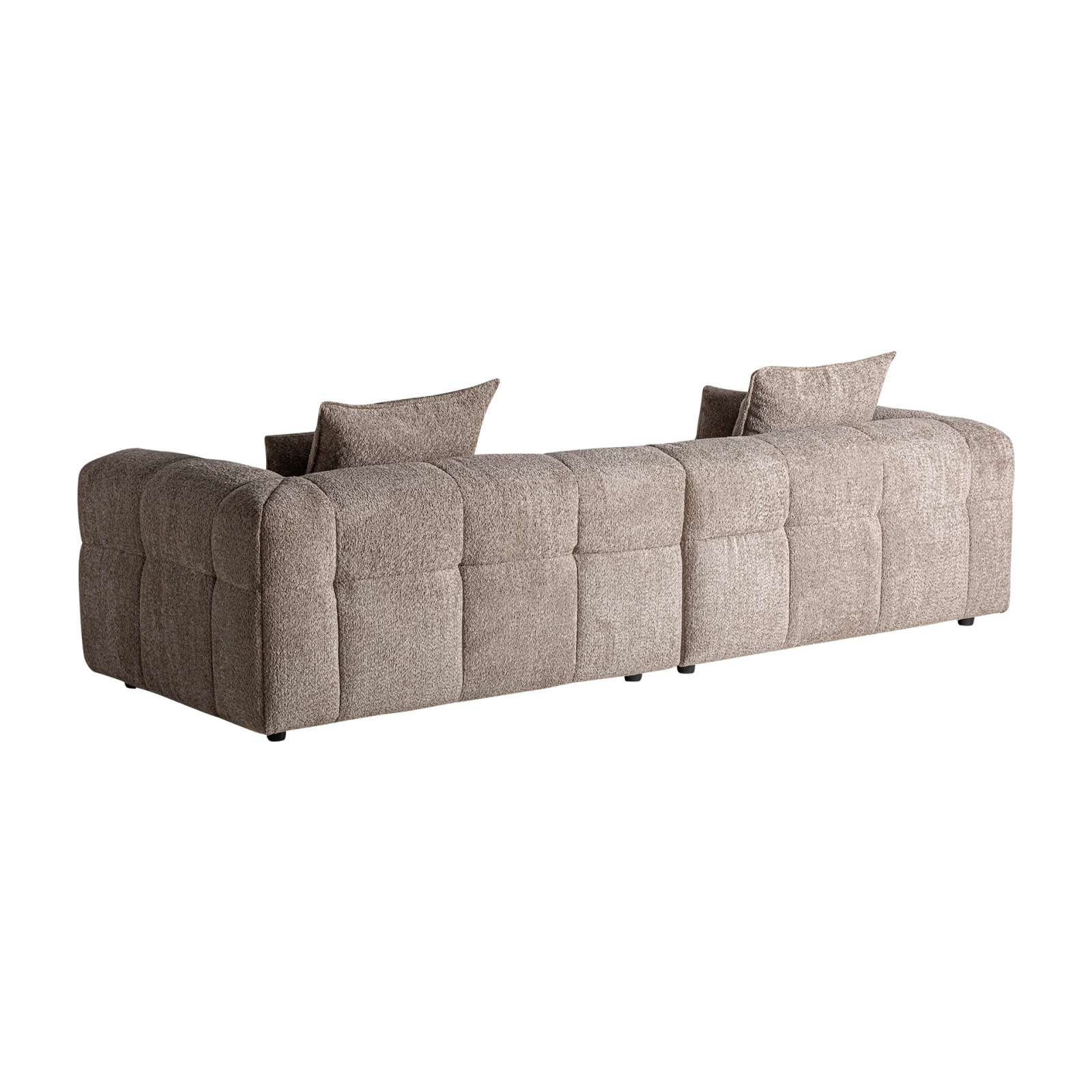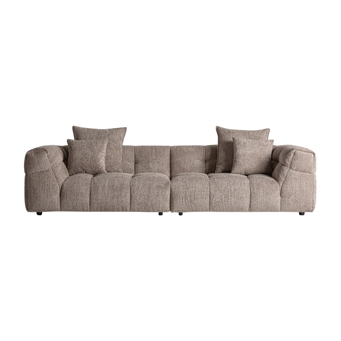 Tapiseria într-o nuanță caldă de maro adaugă profunzime și caracter, fiind o alegere potrivită pentru interioare în care se caută un ambient echilibrat și matur. Pernele cu umplutură din puf de gâscă mixt oferă un confort plăcut, mai moale, care invită la stat și relaxare fără efort.