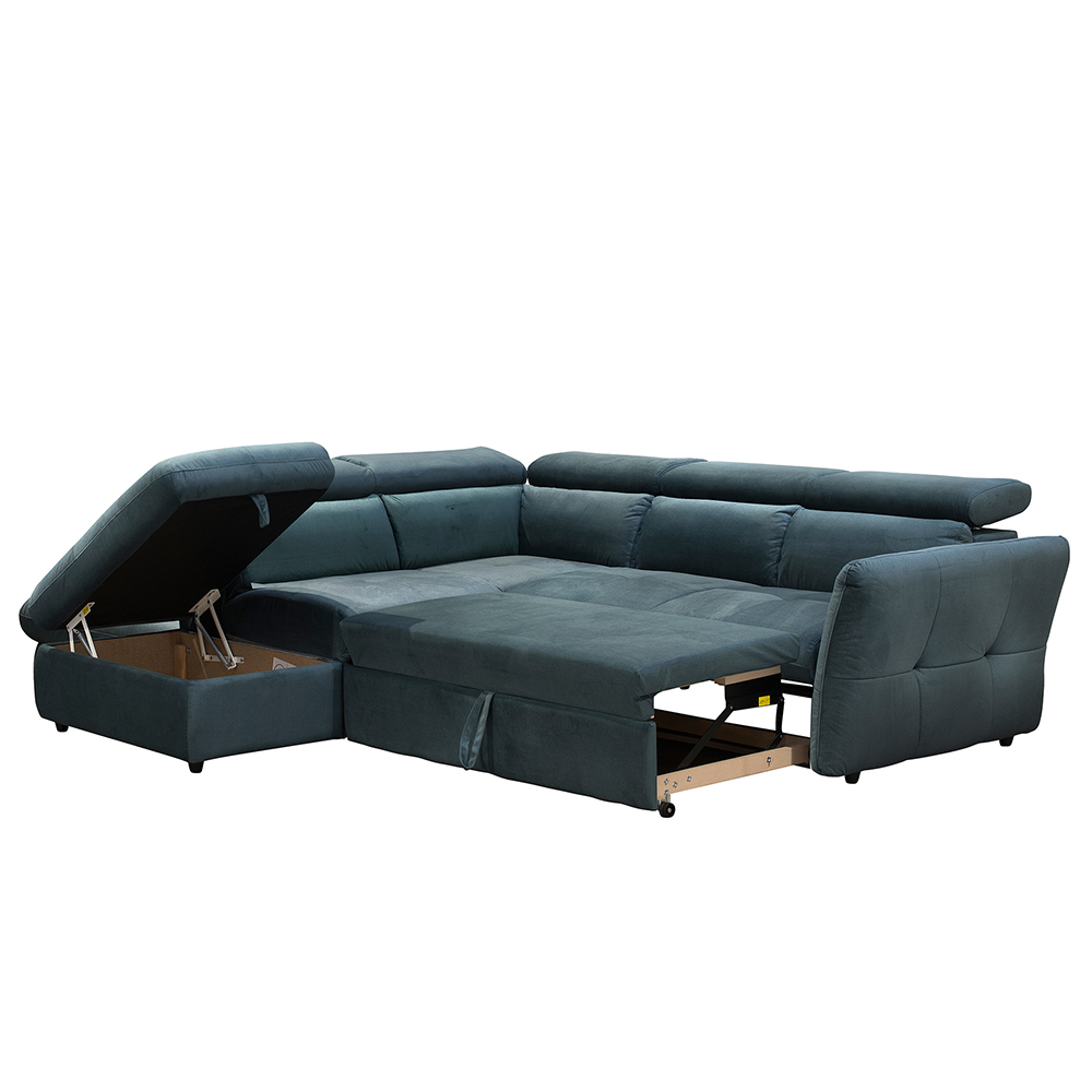Canapea colțar extensibilă stânga cu ladă depozitare din chenille petrol Easy Clean MONSERAT 254x224x90 cm