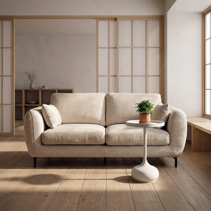 Această canapea cu 2 locuri în nuanță crem este concepută pentru amenajări de living în care se dorește un echilibru între dimensiuni compacte, confort și un aspect vizual curat. Formele rotunjite ale brațelor, șezutul bine proporționat și pernele laterale incluse, creează o piesă potrivită atât pentru spații mai restrânse, cât și pentru completarea unui ansamblu de mobilier.