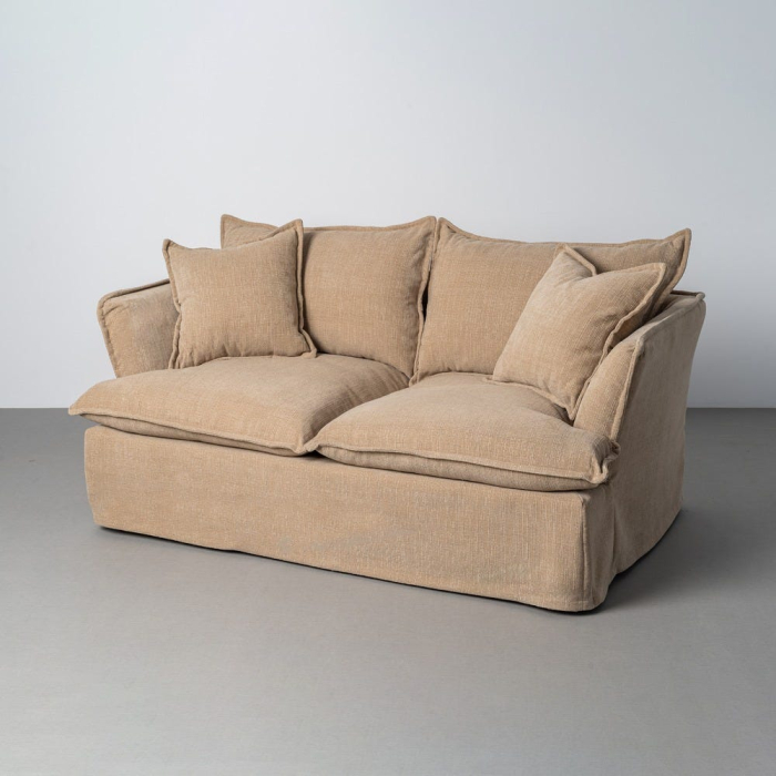 Această canapea cu 2 locuri se remarcă printr-un design confortabil și echilibrat, cu forme moi și perne generoase care invită la relaxare. Nuanța de bej închis adaugă profunzime și căldură spațiului, fiind ușor de integrat în interioare moderne, naturale sau cu accente minimaliste.