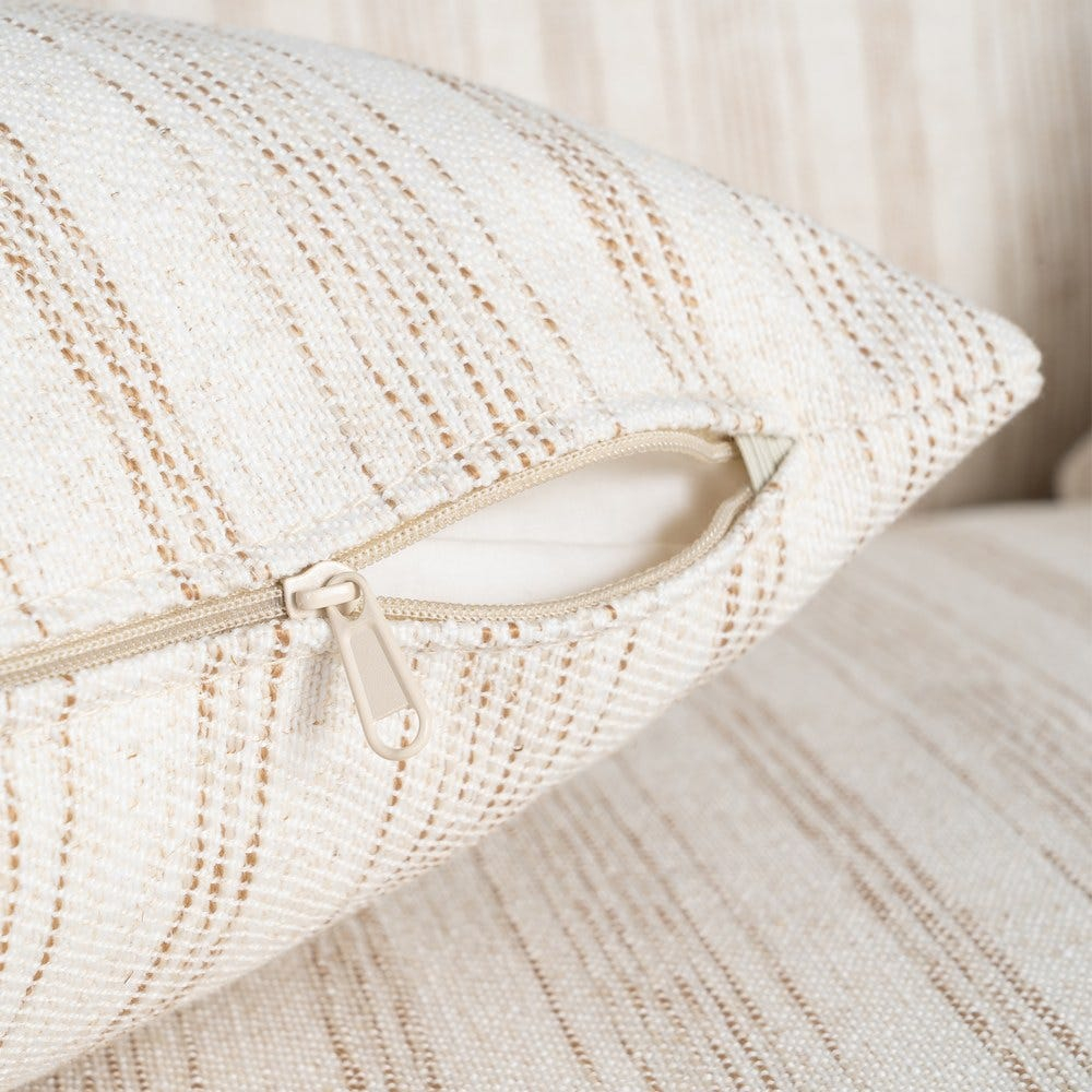 Canapea crem cu 2 locuri tapitată din stofă cu dungi fine perne moi și design relaxat pentru living 178 x 101 x 71 cm