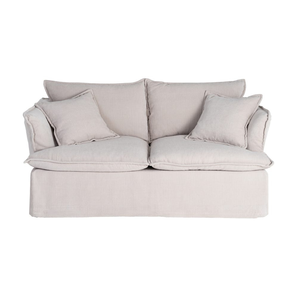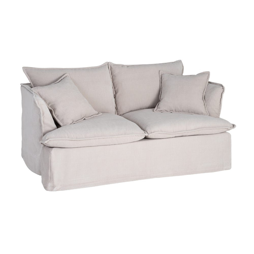 Canapea crem cu 2 locuri tapitată din stofă cu perne moi și design relaxat pentru living 181 x 103 x 72 cm