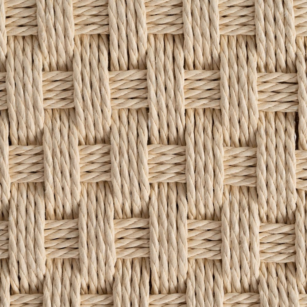 Cadrul metalic oferă stabilitate și finețe, în timp ce nuanța natur a împletiturii aduce căldură și un accent organic. Raftul deschis cu bare paralele te ajută să păstrezi încălțămintea sau cutiile de depozitare perfect ordonate, fără a încărca spațiul.
