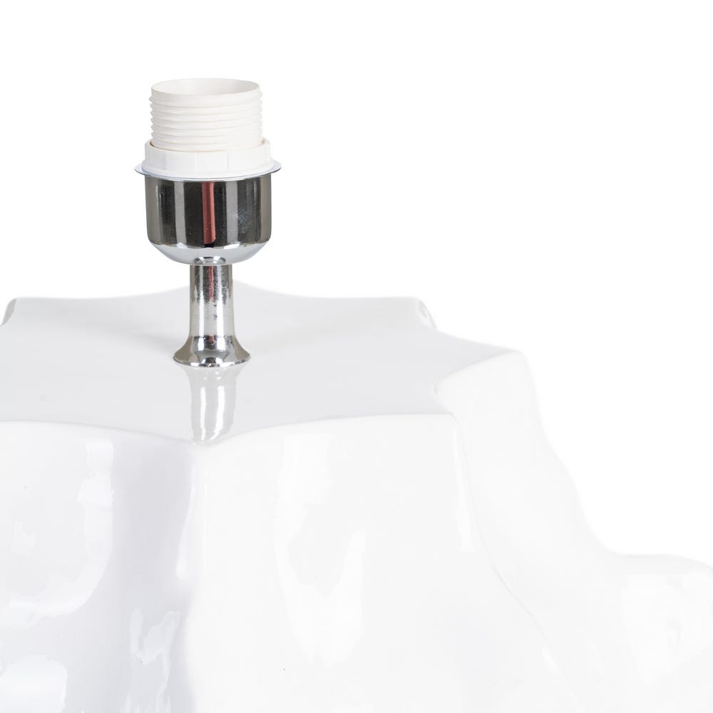 Bază de veioză din ceramică albă lucioasă cu volum sculptural, potrivită pentru iluminat decorativ în living, dormitor sau hol. Formele neregulate creează reflexii elegante și dau personalitate ansamblului, indiferent de abajurul ales.