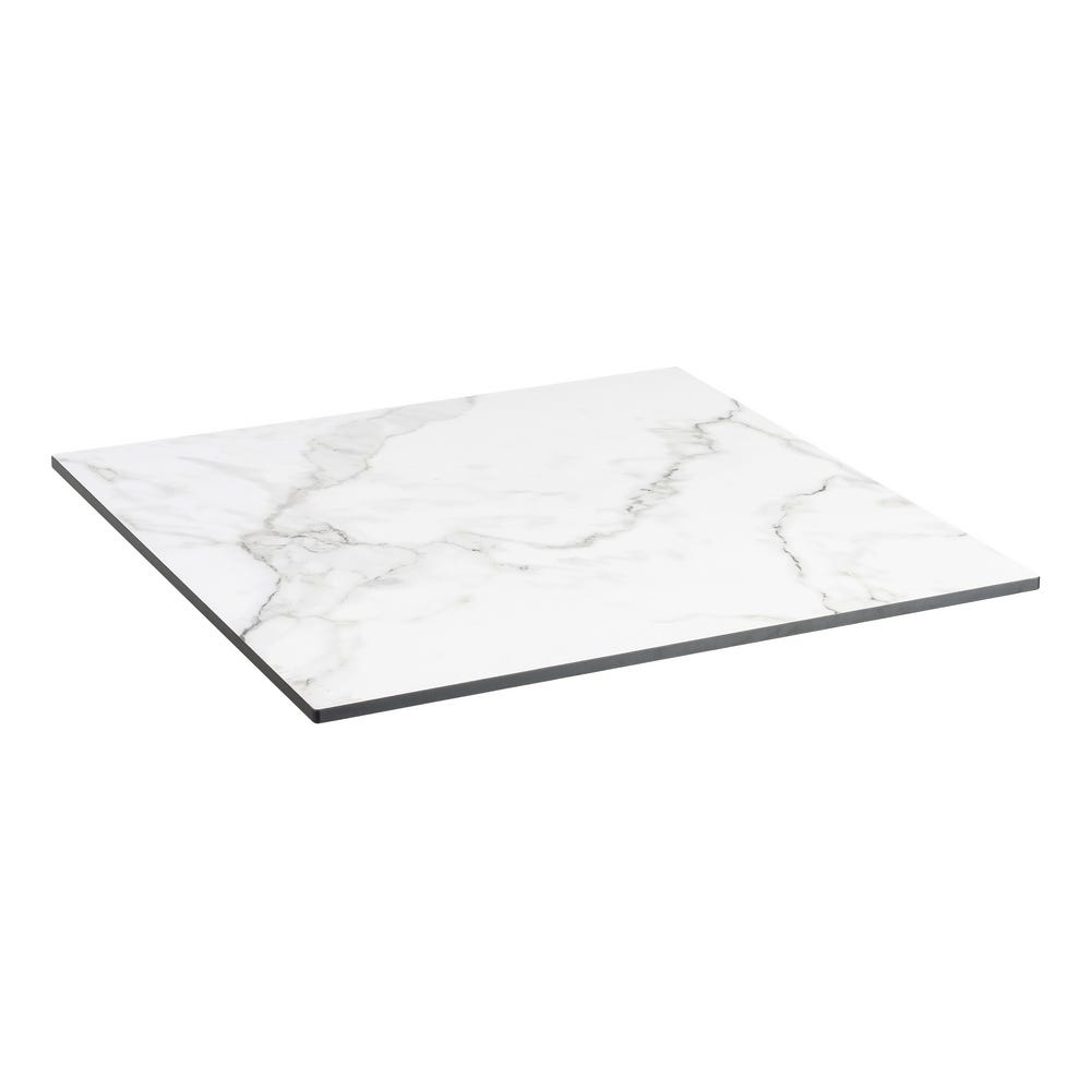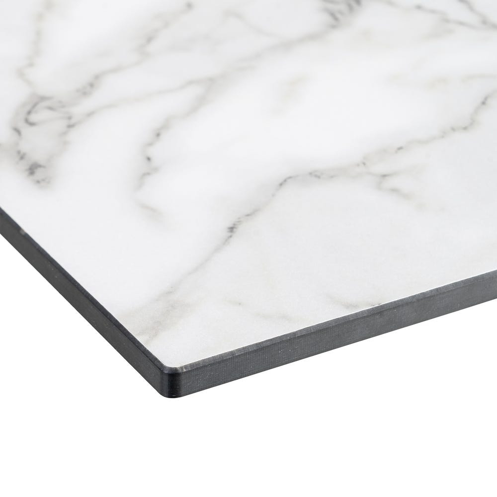 Blatul pătrat HPL alb marmorat aduce eleganță și luminozitate în orice spațiu. Realizat din HPL de înaltă calitate, este conceput pentru a rezista la utilizare intensă și condiții de exterior. Structura sa fină imită perfect marmura albă, adăugând un accent luxos și modern.