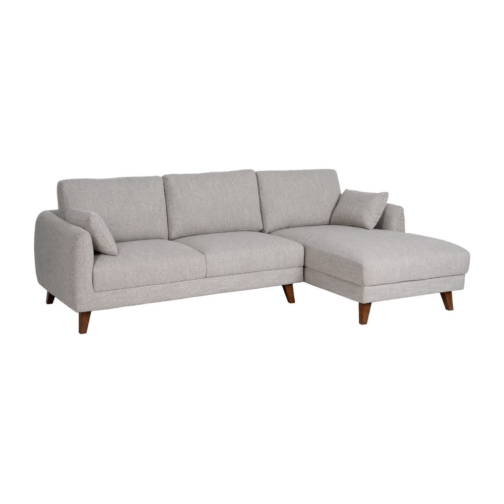 Elegantă și relaxantă, această canapea tip chaise longue în nuanță gri deschis oferă confort zilnic și un look modern, cu picioare din lemn și linii curate ușor de integrat în livinguri contemporane, scandinave sau japandi.