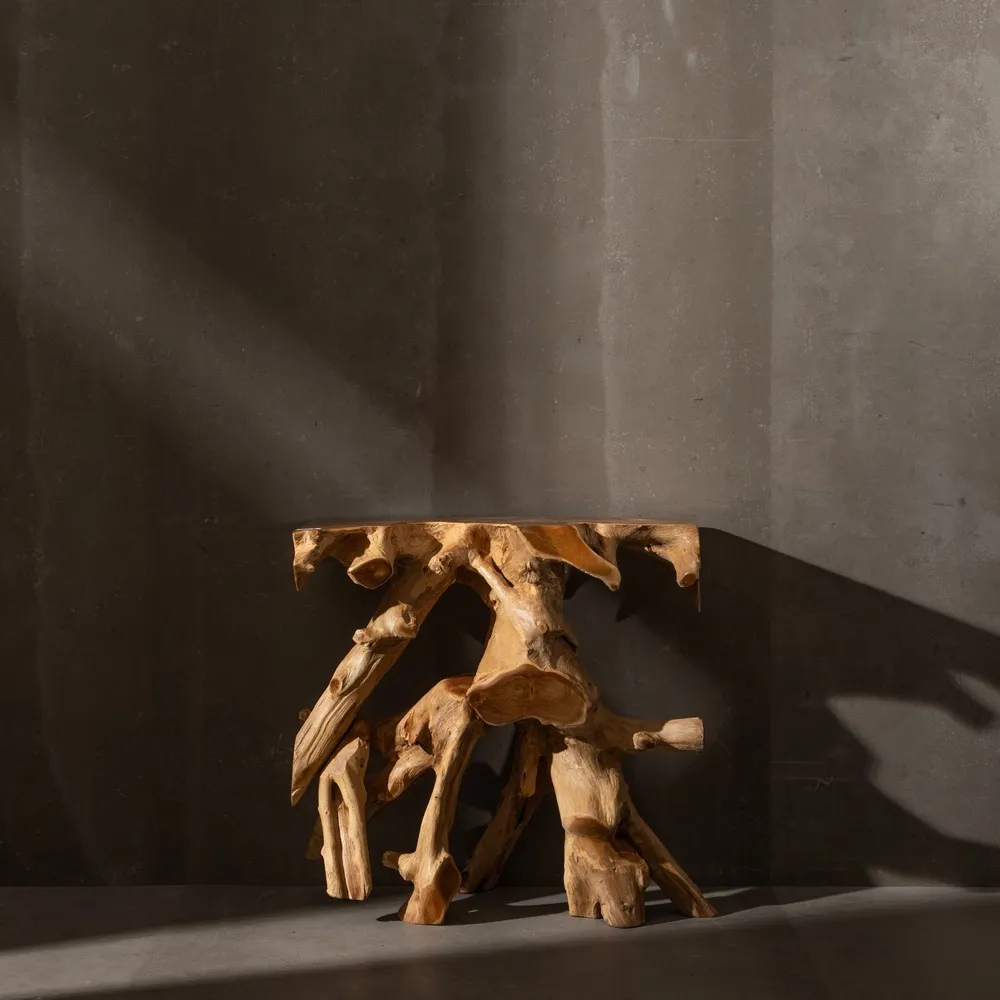 Consola modernă rustică din lemn natural de tec - adaugă un farmec distinct oricărui spațiu interior. Cu un design creativ și solid, această piesă de mobilier adaugă o notă de autenticitate și calitate. Descoperă eleganța și simplitatea într-un singur produs, care îmbină perfect aspectul rustic cu linii moderne. Alege această consolă pentru a conferi un aer fresh și natural oricărui mediu și pentru a adăuga un plus de eleganță și confort.