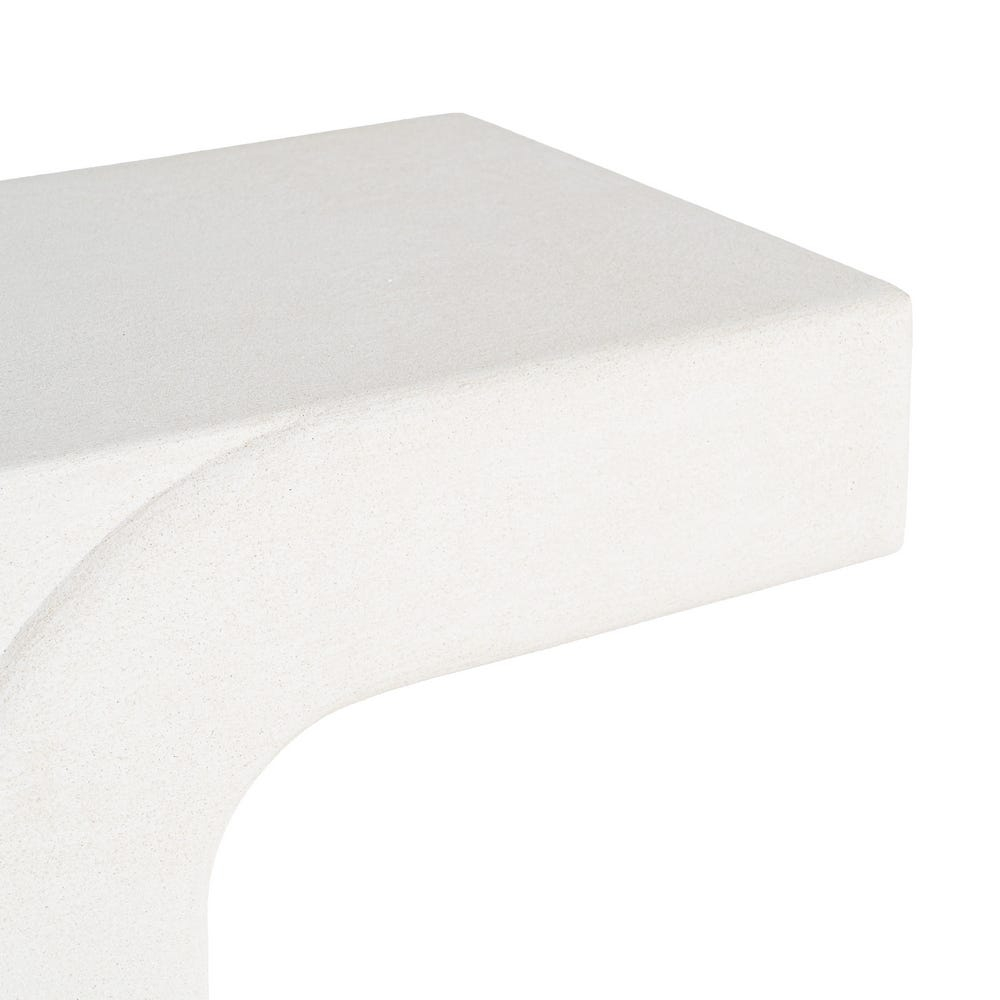 Nu este doar o consolă, ci o piesă care atrage prin formă și echilibrează vizual întregul spațiu. Liniile curbe, dar bine definite, creează un joc interesant de forme, iar nuanța de alb aduce o senzație de calm și luminozitate.