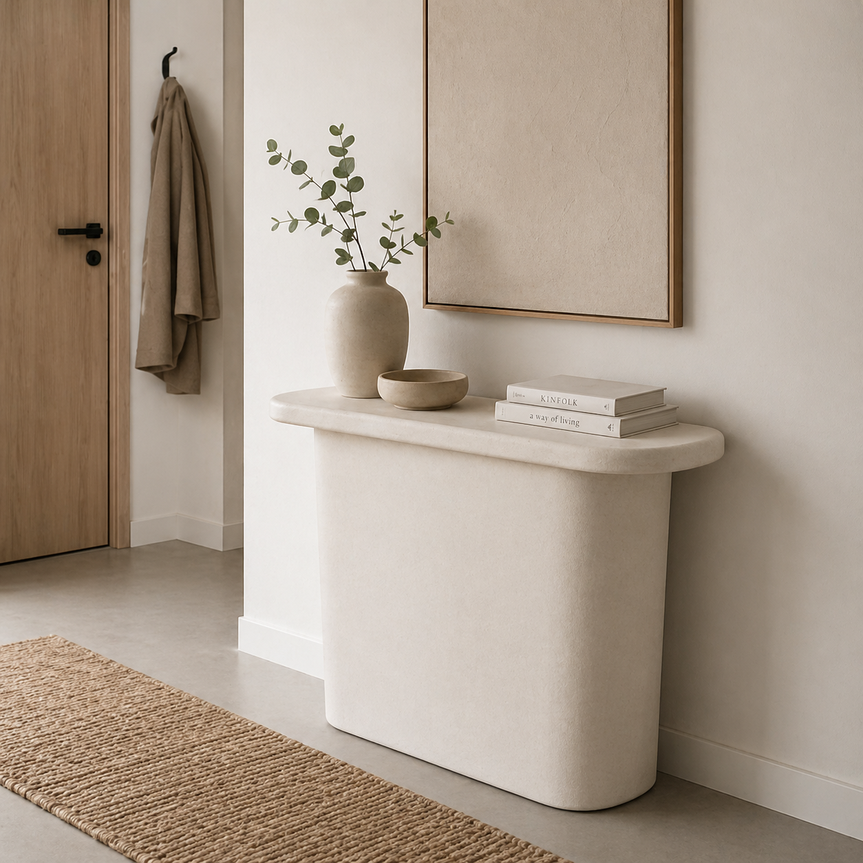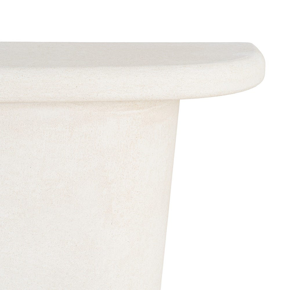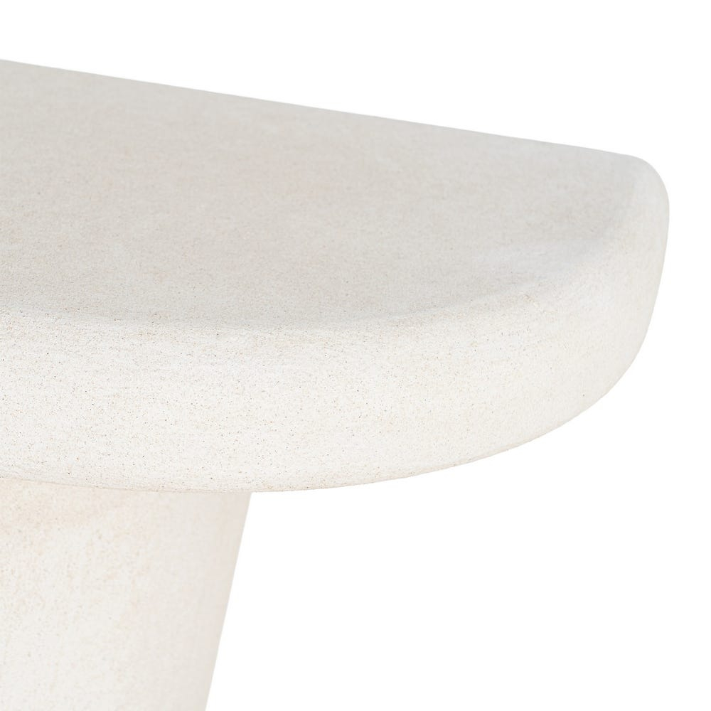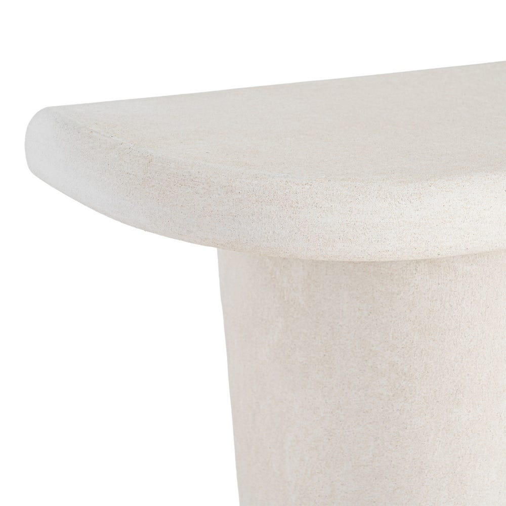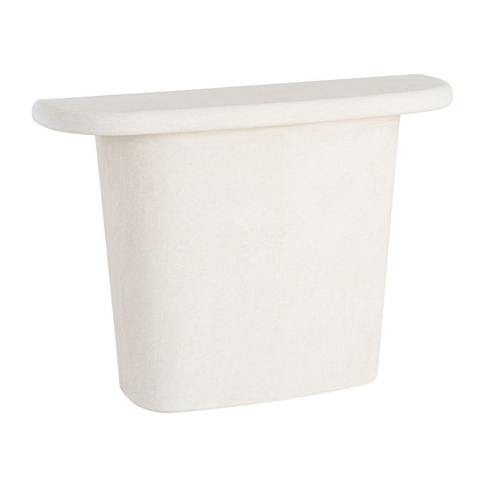 Cu o formă blând rotunjită și o prezență discretă, această consolă aduce un plus de liniște și echilibru într-un spațiu bine organizat. Nuanța de alb deschide vizual încăperea, iar volumul compact o face ușor de integrat fără să încarce.