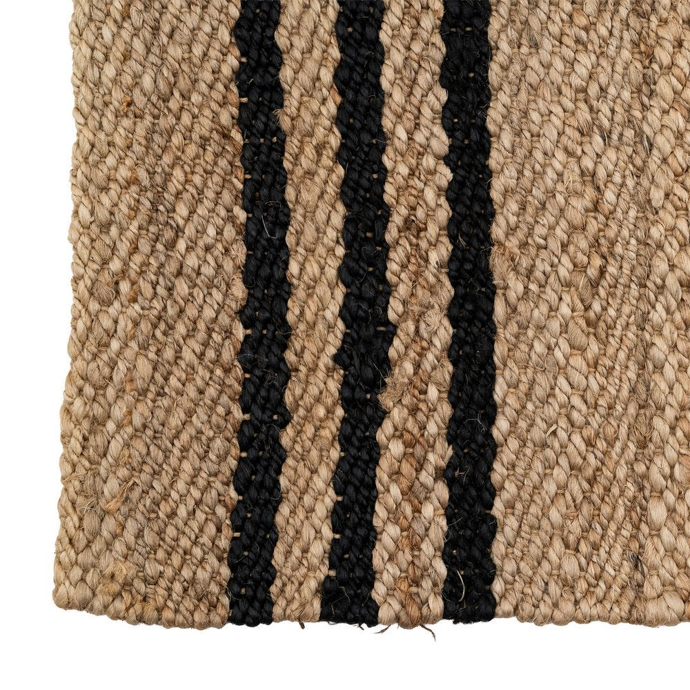 Covor din iută natural cu dungi negre Altea pentru living, dining sau hol, care aduce textură organică și, în același timp, un accent grafic discret prin cele trei benzi negre țesute la capete.