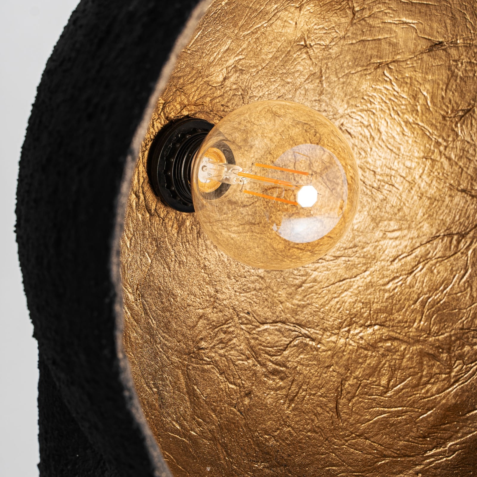 ✔ Exterior mat negru cu textură tactilă și interior aurit pentru lumină caldă