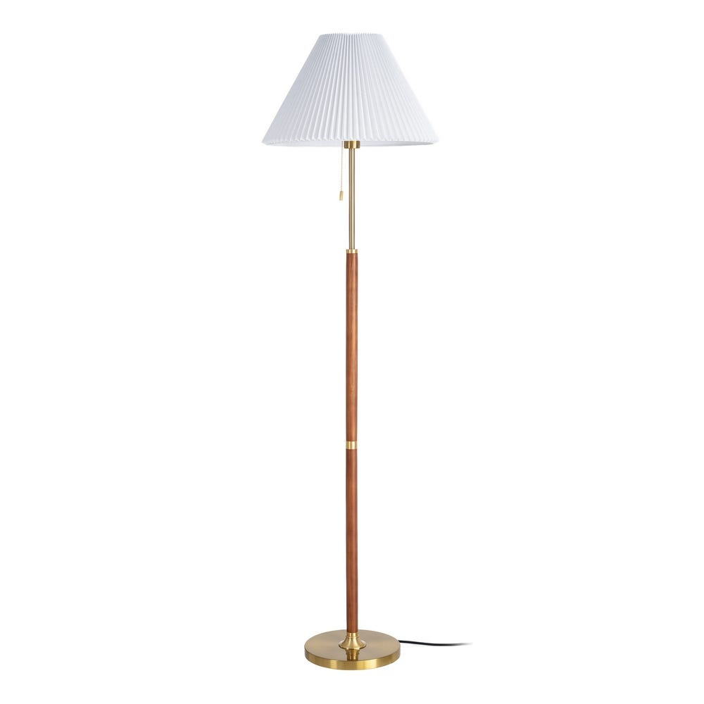 Lumina potrivită poate transforma complet atmosfera unei încăperi, iar acest lampadar reușește să aducă exact acel echilibru între funcțional și decorativ. Lemnul maro, accentele aurii și abajurul alb plisat creează o prezență caldă și plăcută, ideală pentru momentele de relaxare.