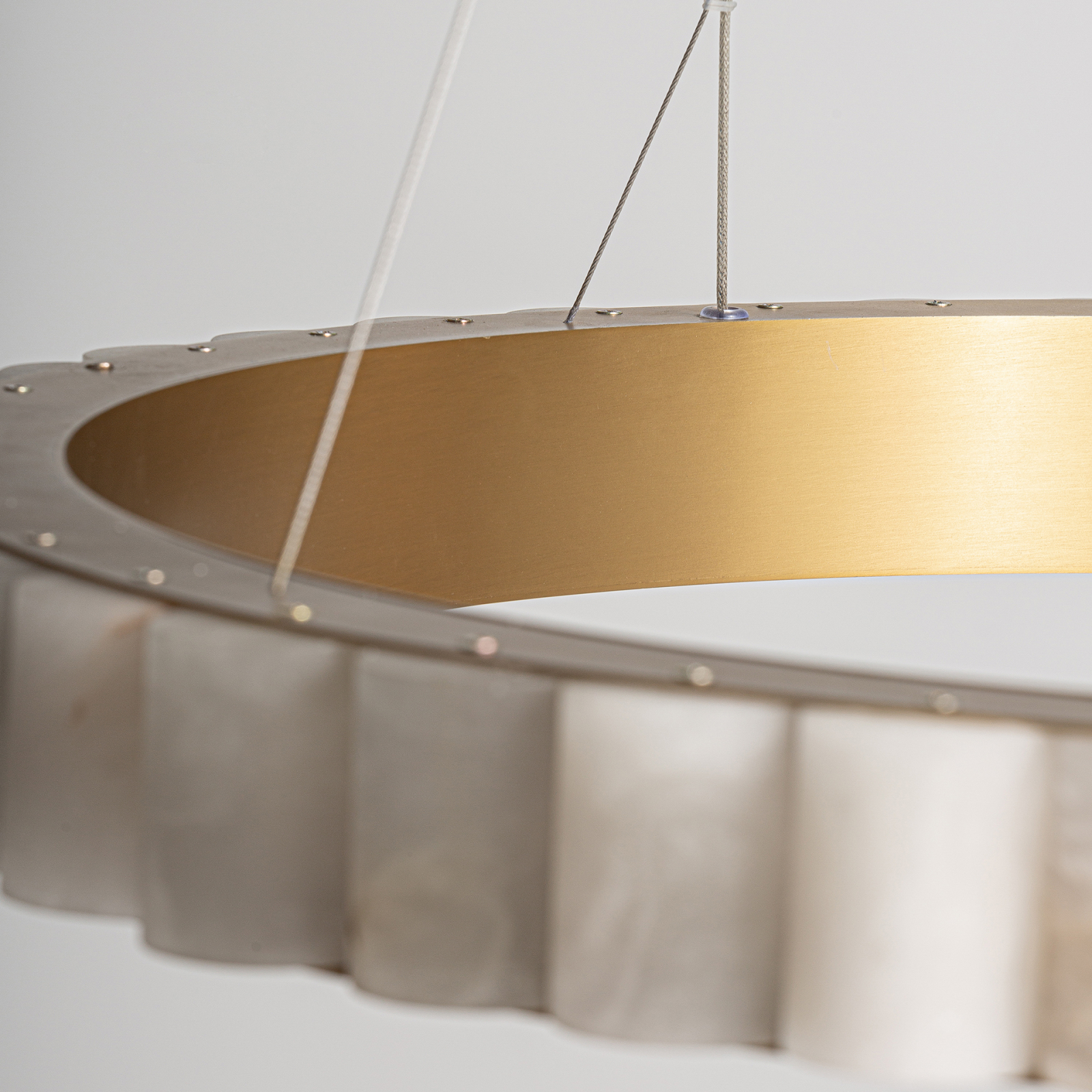 Lustra ce imbina marmura alba cu fierul auriu intr-un design contemporan. Cu dimensiuni generoase de 80x80 cm si profil subtire de 7 cm devine accent dramatic. Greutatea de 19.9 kg asigura stabilitate perfecta. Ideala pentru livinguri sufragerii sau holuri unde doriti sa aduceti eleganta naturala a marmurei.