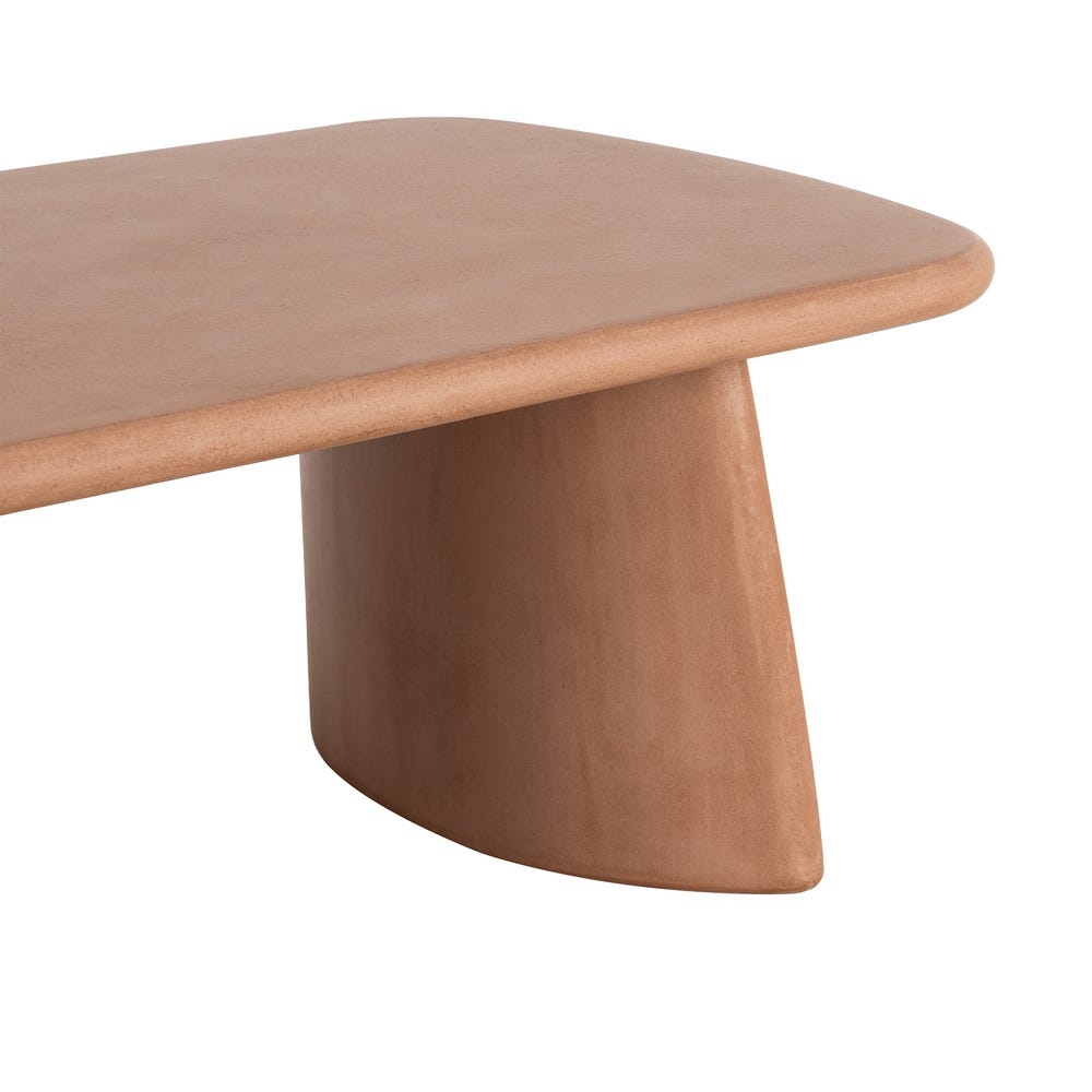 Această masă de cafea se remarcă printr-o siluetă alungită și un limbaj sculptural echilibrat, potrivit pentru zone de living contemporane. Forma dreptunghiulară cu colțuri rotunjite oferă o prezență stabilă și elegantă, ușor de integrat în spații moderne sau minimaliste.