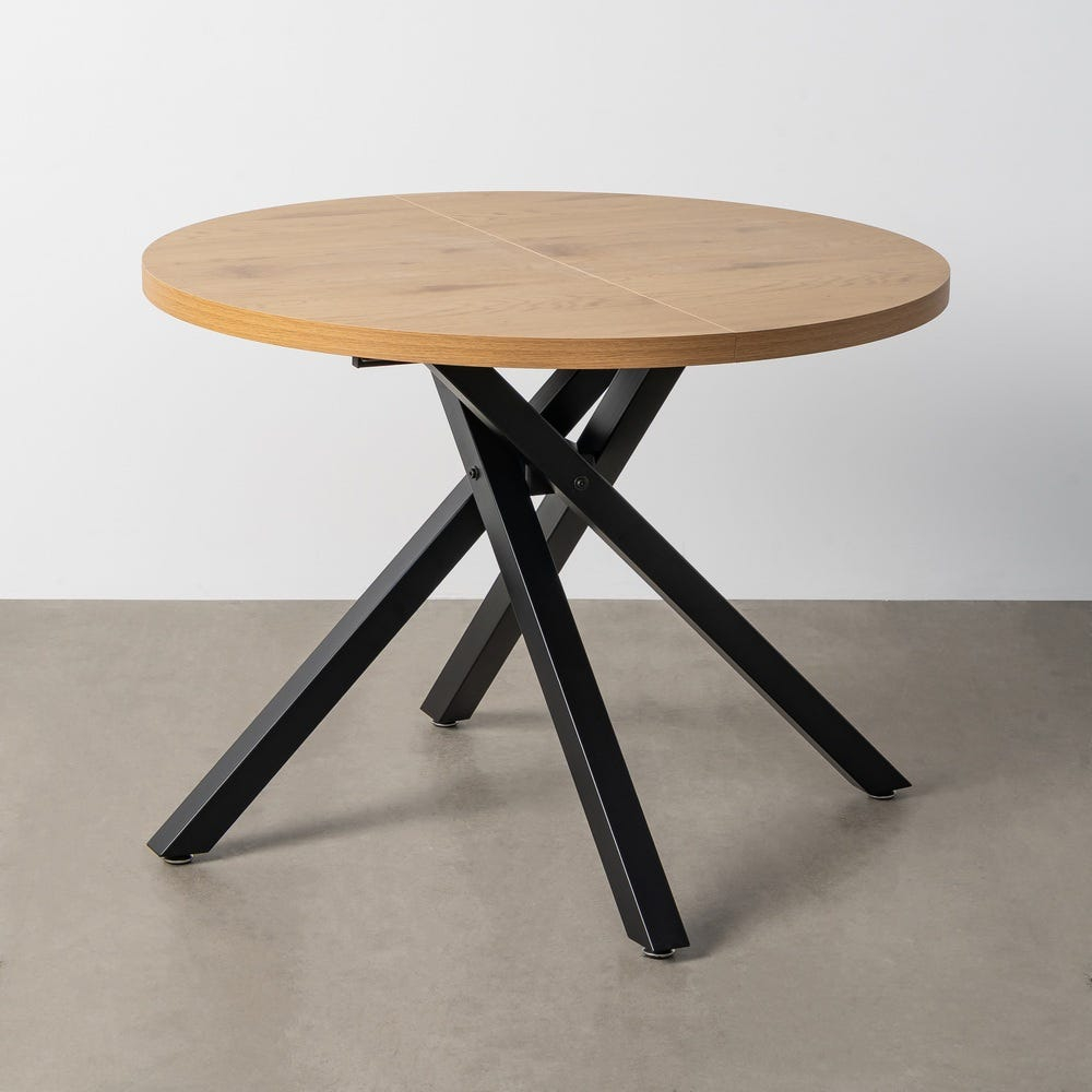 Masa extensibilă rotundă din MDF și metal impresionează prin designul său modern și funcționalitatea inteligentă. Blatul cu aspect de lemn natur adaugă căldură vizuală, în timp ce structura metalică încrucișată oferă stabilitate și un aspect sofisticat. Extensia integrată permite transformarea rapidă într-o masă ovală de 140 cm, ideală pentru întâlniri cu familia și prietenii.