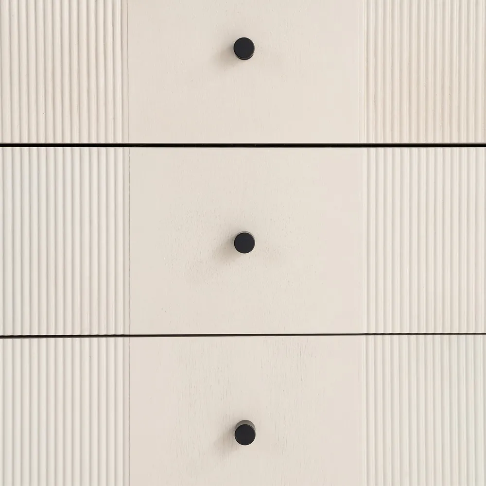 Această noptieră este concepută pentru dormitoare amenajate în stil contemporan, oferind un echilibru clar între spațiu de depozitare și un design ordonat. Volumul compact, finisajul crem și liniile drepte sunt completate de fronturile texturate ale sertarelor, rezultând o piesă funcțională cu prezență vizuală bine definită.