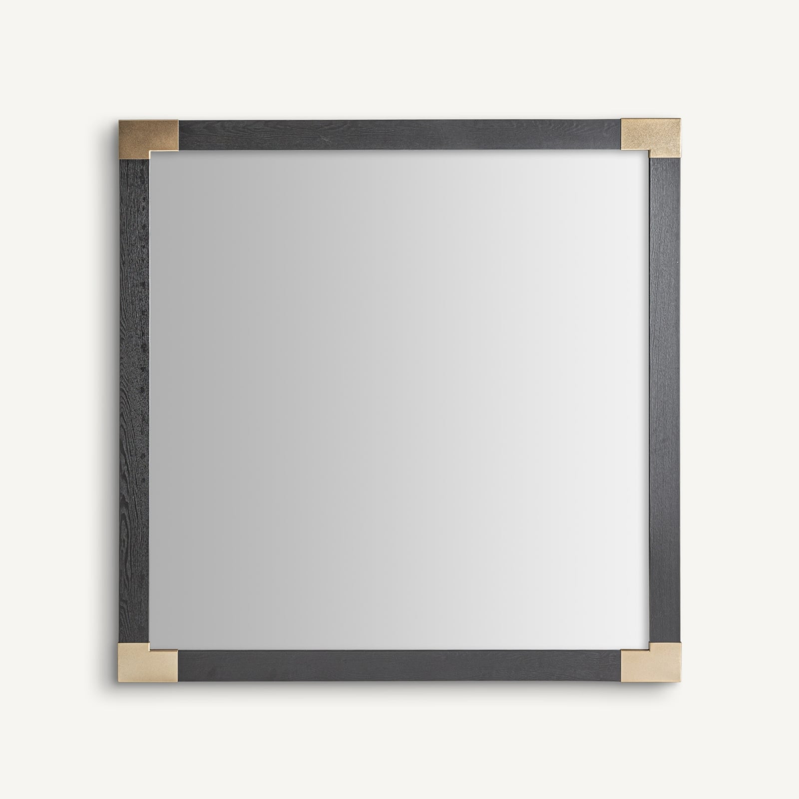 Oglindă perete Art Deco cu ramă din frasin negru și colțuri metalice aurii Delmont 140 x 11 x 140 cm